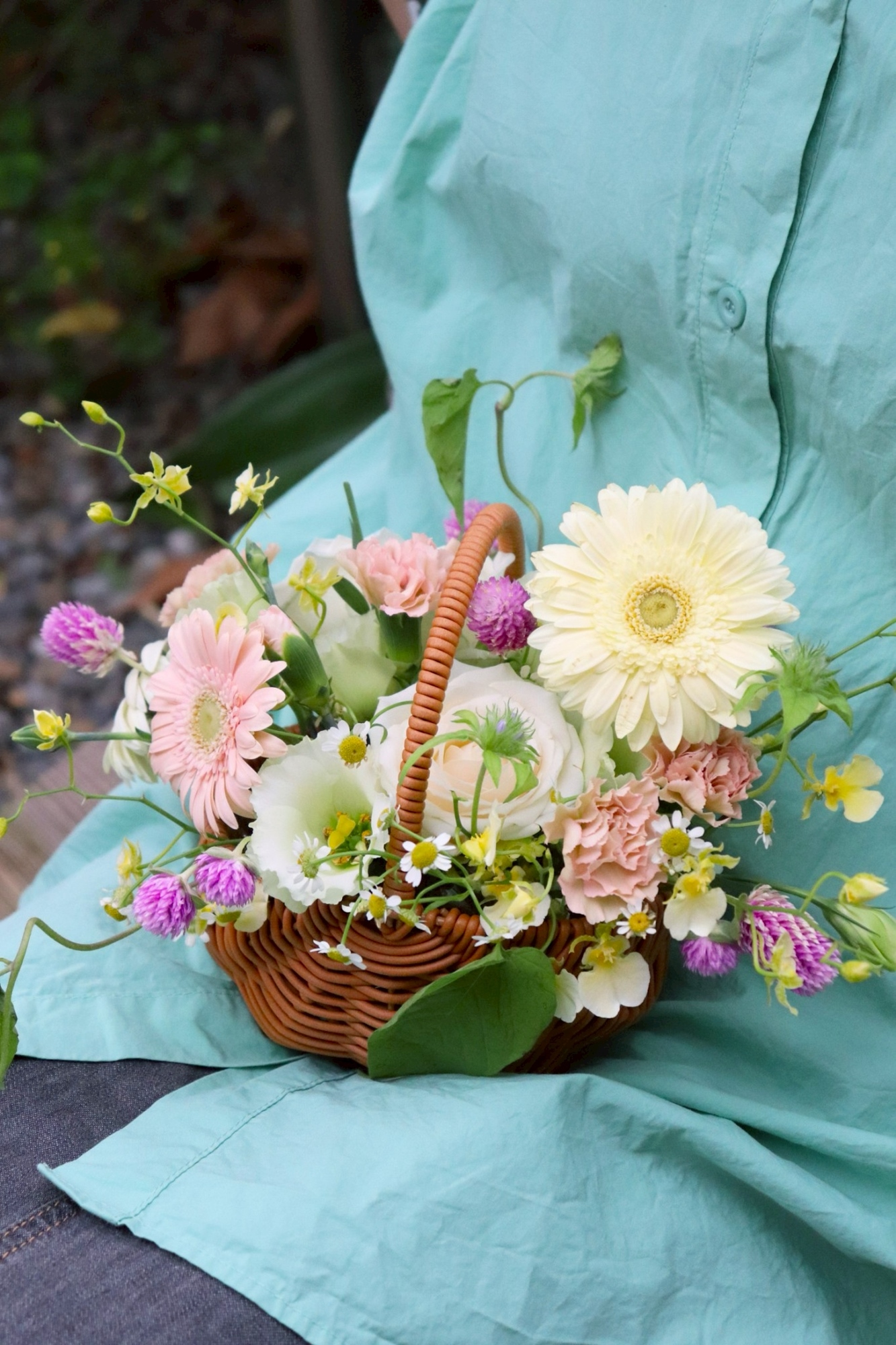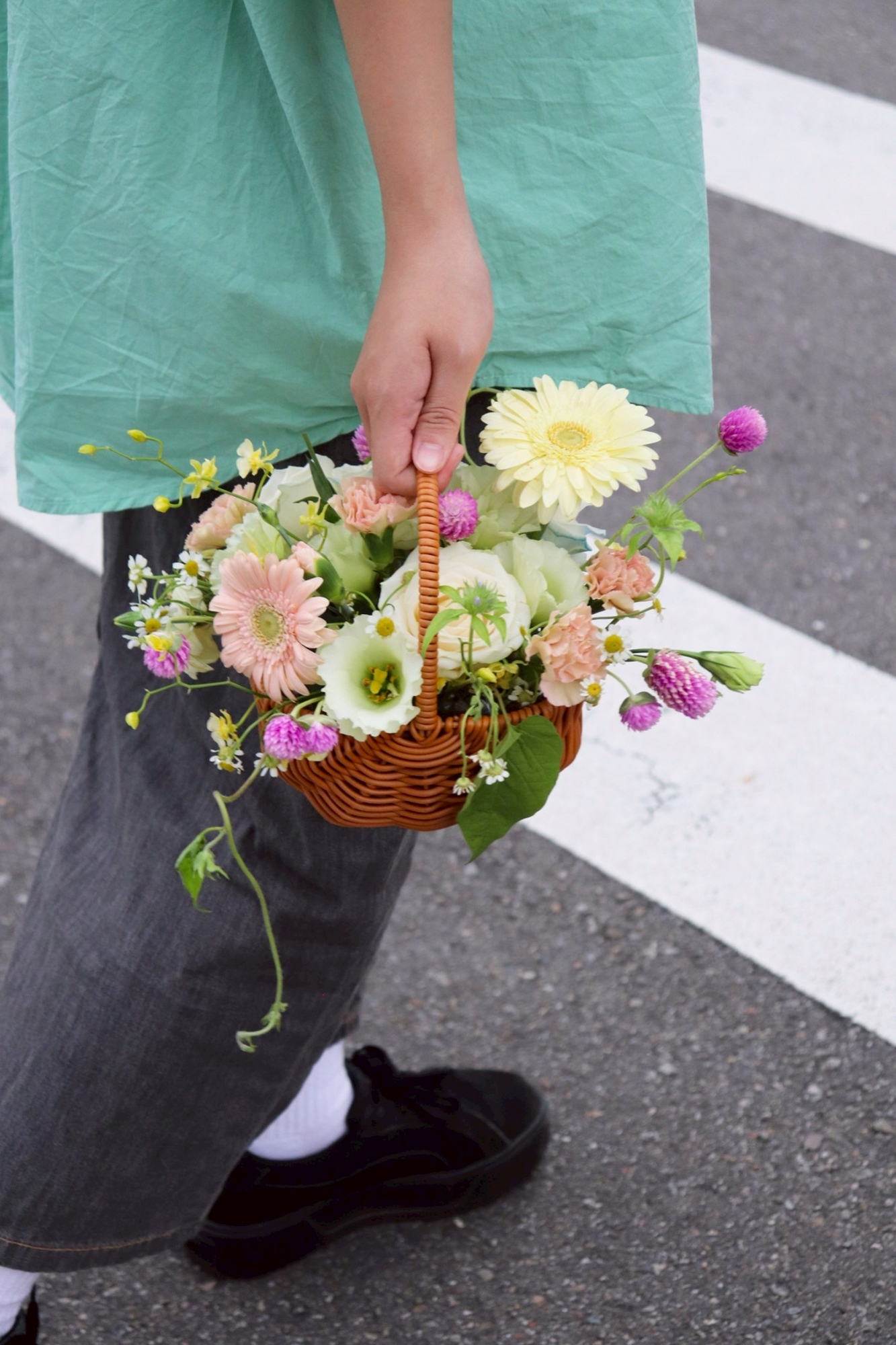 粉色的溫柔、淡黃的明亮、純白的清新,在小小花籃裡悄悄盛開。