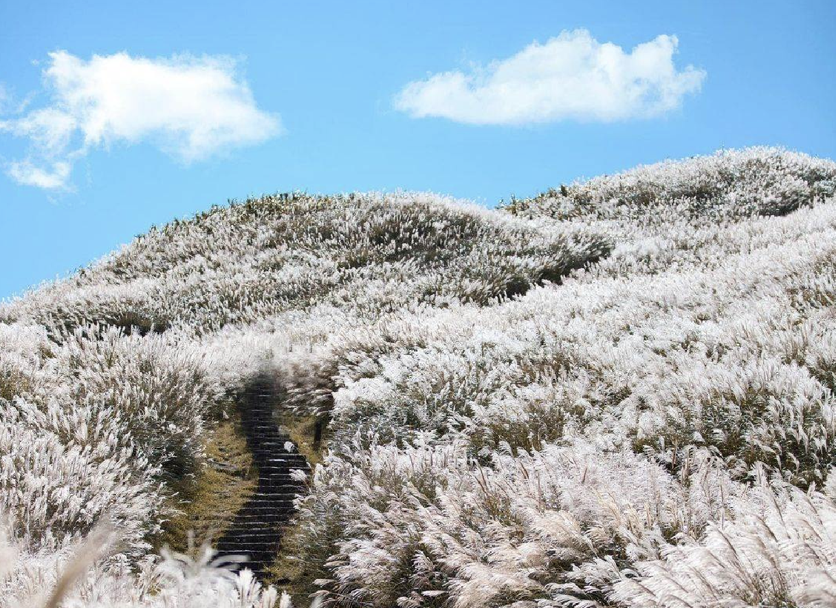 「半屏山」,海拔713公尺,其中一面岩壁裸露山勢陡峭,有如刀削,故稱為半平山,卻有三千公尺以上的高山的氣勢,山頂欣賞層疊的山巒,大片青翠的草原,芒草隨風搖曳,像海浪一波波襲捲而來,可望至基隆山、深澳、八斗子、和平島、野柳等,視野極佳。