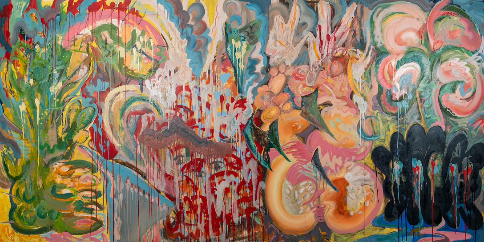 透過不拘媒材的方式與特殊尺寸畫布,