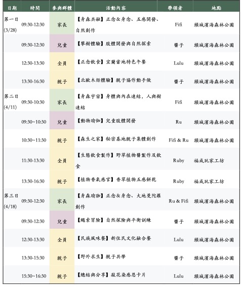 報名須知:【一組親子名額】為1 位家長+1 位兒童,每組親子可報名不同日期(三日共學日皆不同活動,具有連續性),報到時請出示電子票卷