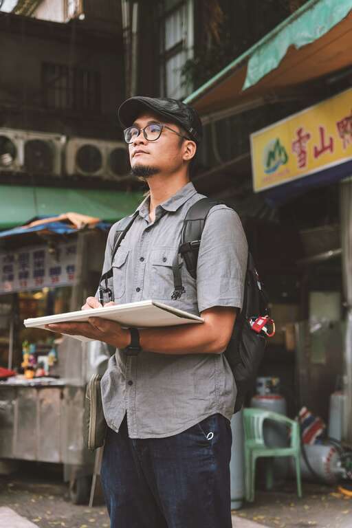 擅長速寫與水彩技法,提倡「用繪畫代替照相打卡」的生活態度。其筆觸流暢、色調溫暖,下筆間帶有獨到觀點與人文關懷,揉合對城市風景與日常生活「捨不得」的情感,持續記錄城市的美麗與變遷。