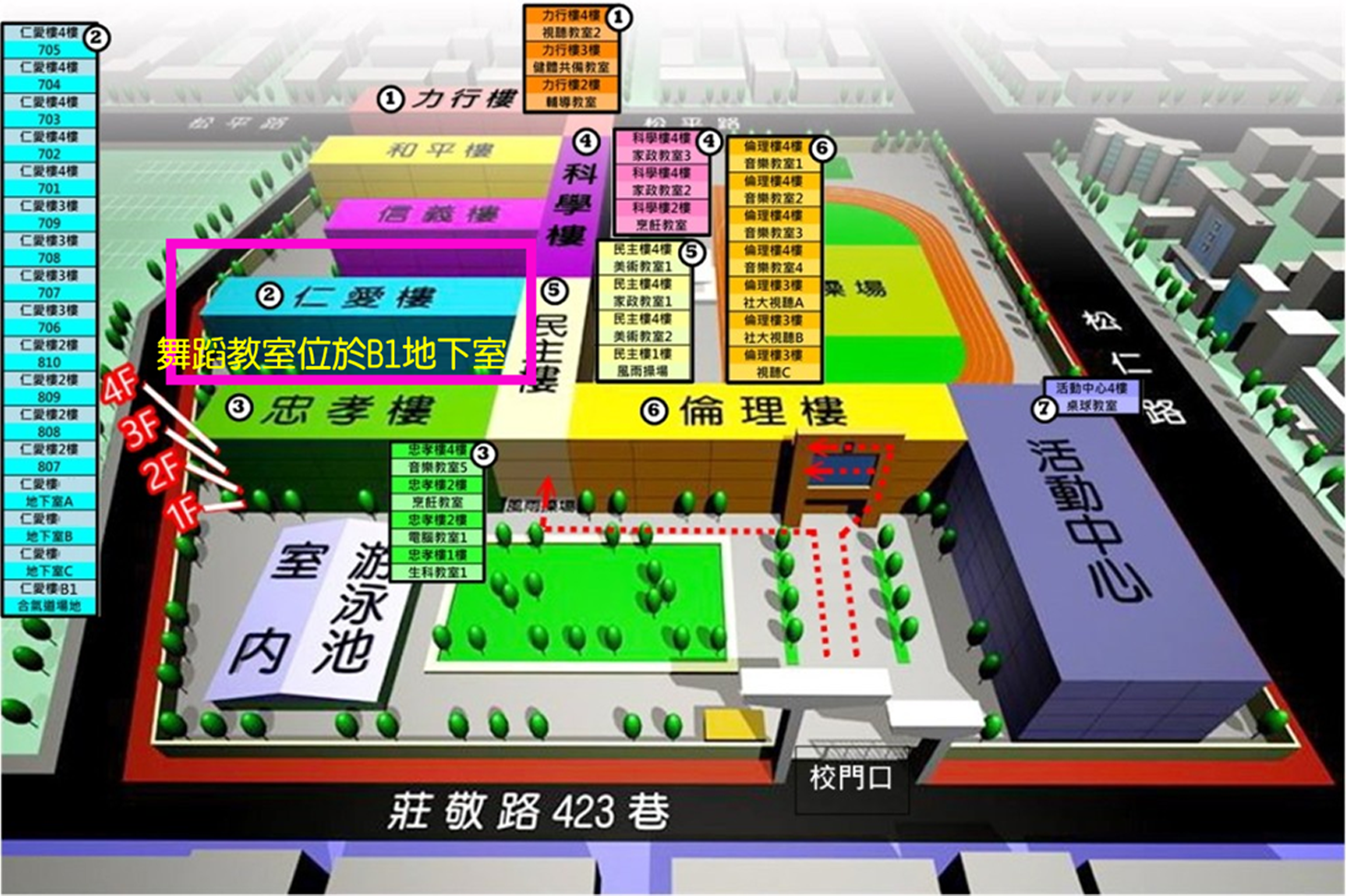 🙂 教室位置位於仁愛樓B1地下室,從大門進入後當天有志工會協助引導至教室位置,進入教室前會經過較暗的長廊(基於學校要省電喔~),請參考地圖