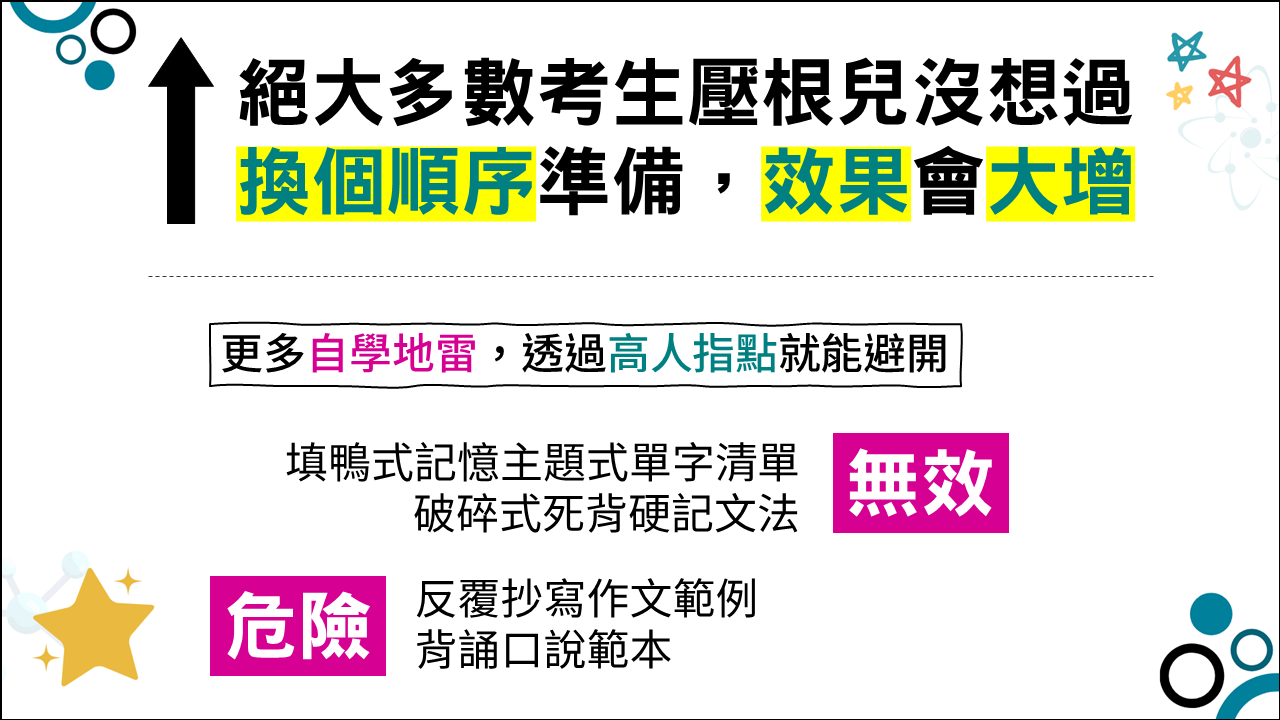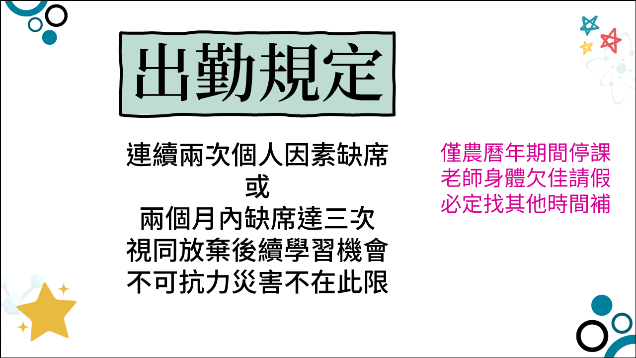 沒有總時數的限制但【越快拿到越高分越好】,我可不希望你上課到永久。一般土生土長的台灣考生,7個月就能拿到平均7.0,即使從拼音開始學英文的考生,必然能在一年半以內考取四科7.0。結論是:你不會上到天荒地老的,可是只要你來上課,就是免費。