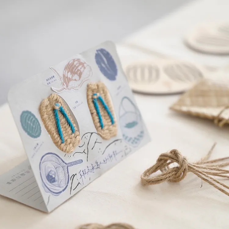 草鞋是海島人早期去潮間帶採食的工作鞋,也是連結大海與生活的重要配備。透過卡片和線材的經緯交織,學習這項草鞋技藝的編織概念,也傳遞文化價值和祝福給他人,延續海島潮鞋的記憶和技藝。