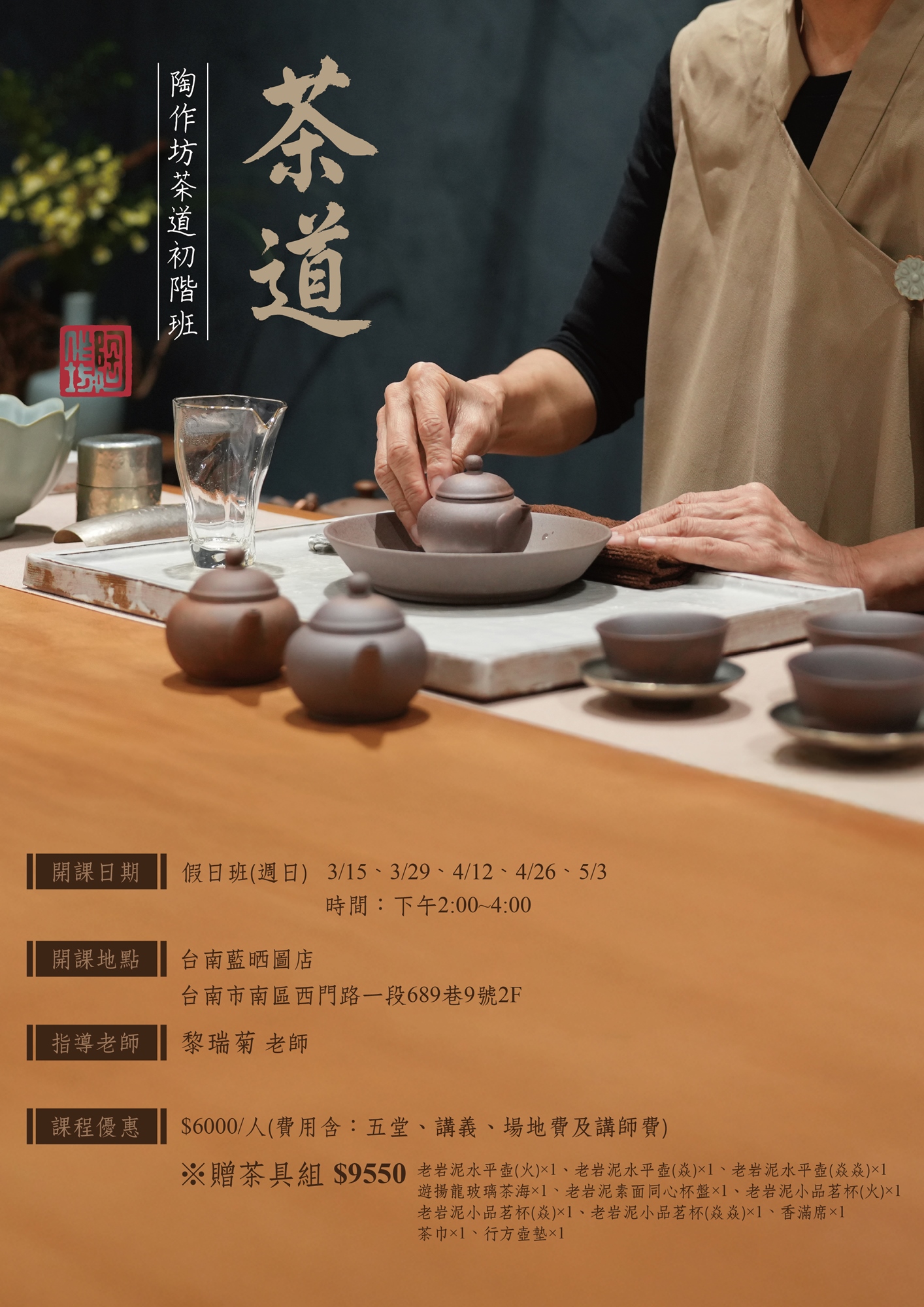 🎓 結業禮遇: 課程完成頒發結業證書,並贈送茶具組一套(總價值 9,550 元)
