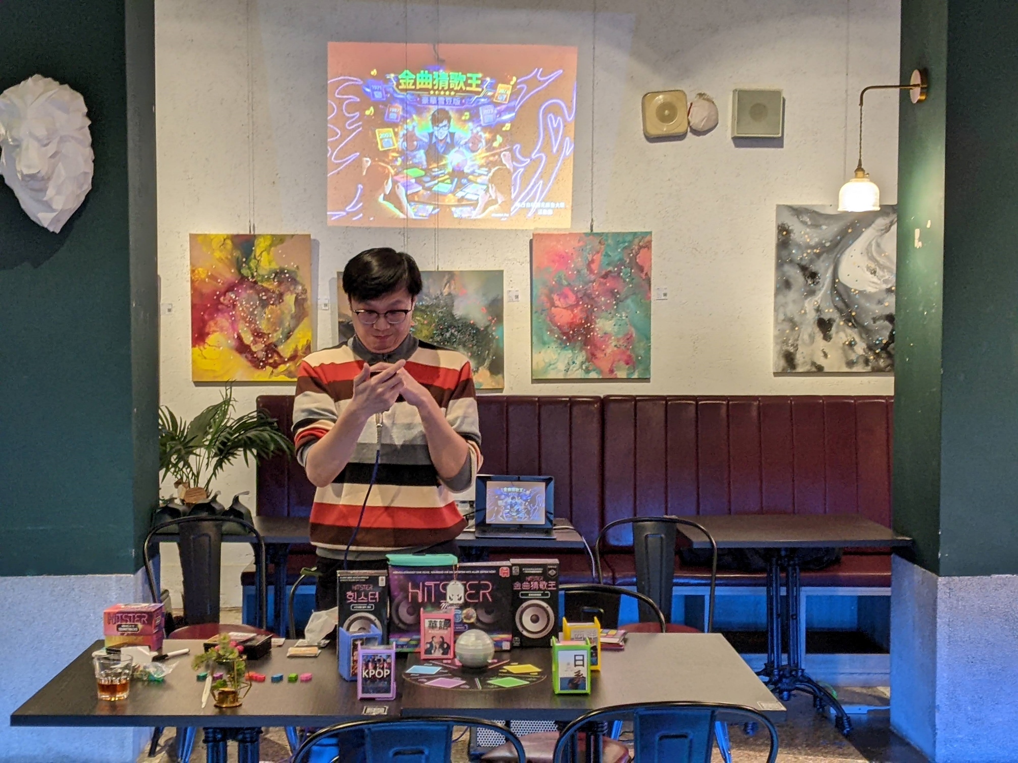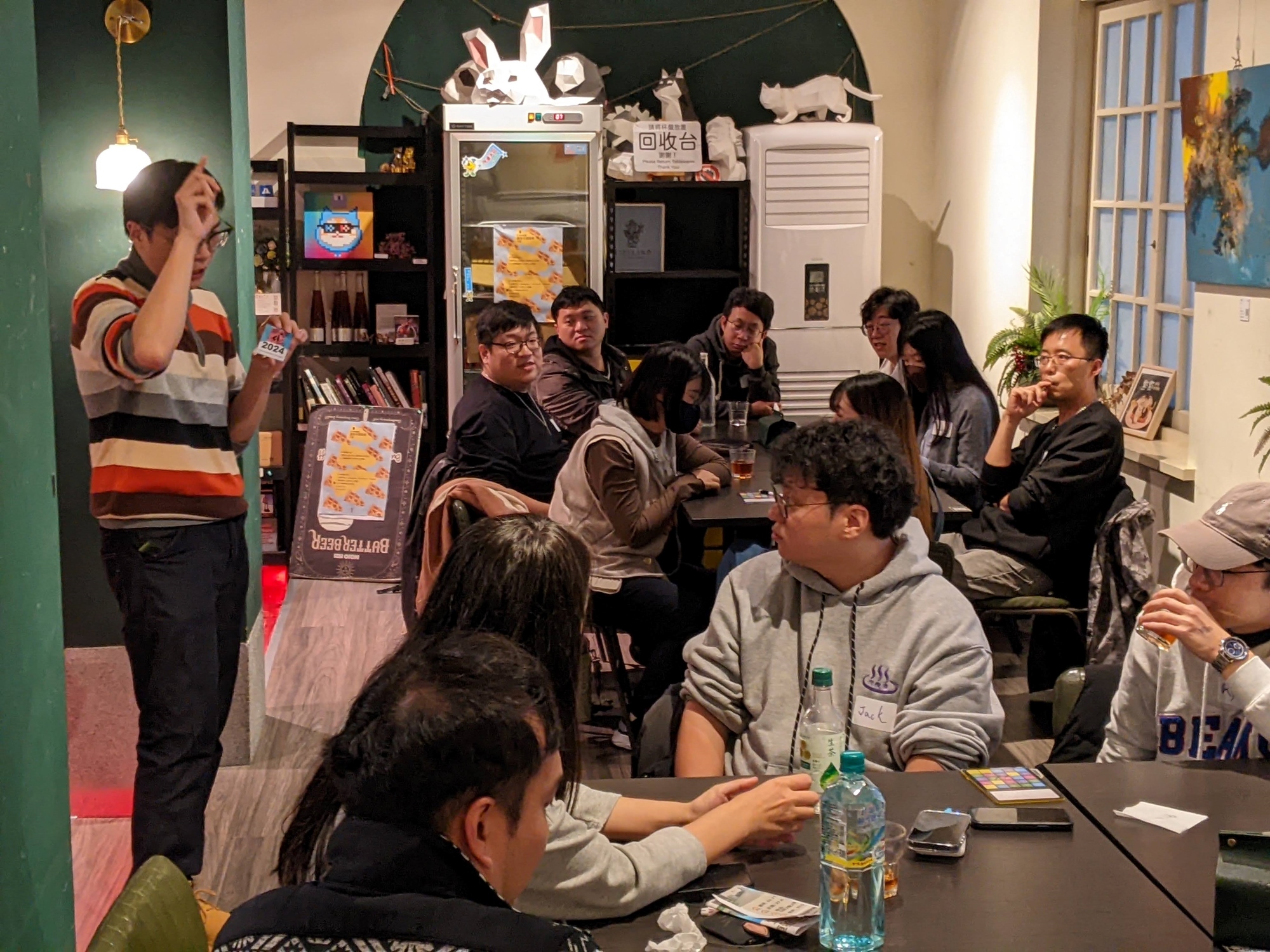 - 接著人差不多到齊之後,我們會先玩主要的遊戲(Hitster 金曲猜歌王、JinxO 聯想賓果遊戲、四角偵探、價值觀、混亂起司等)。