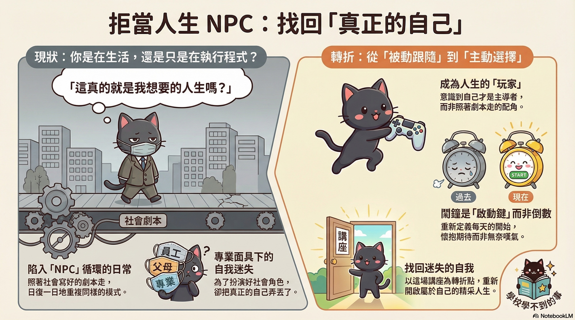 我們活得很努力,卻活得很像「NPC」(非玩家角色),照著社會寫好的劇本走,卻忘了自己才是這場人生的玩家。