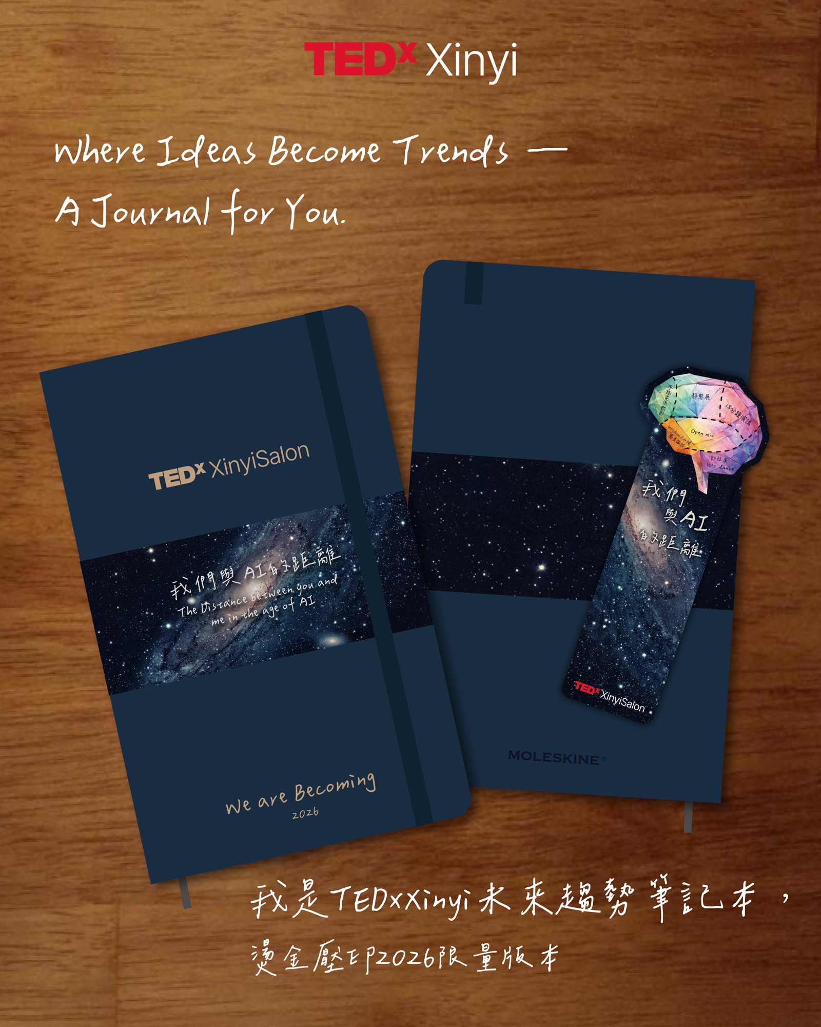 💡TEDxXinyi 5週年紀念品,Moleskine特約趨勢筆記本以及大腦書籤都會限量收藏筆記本。