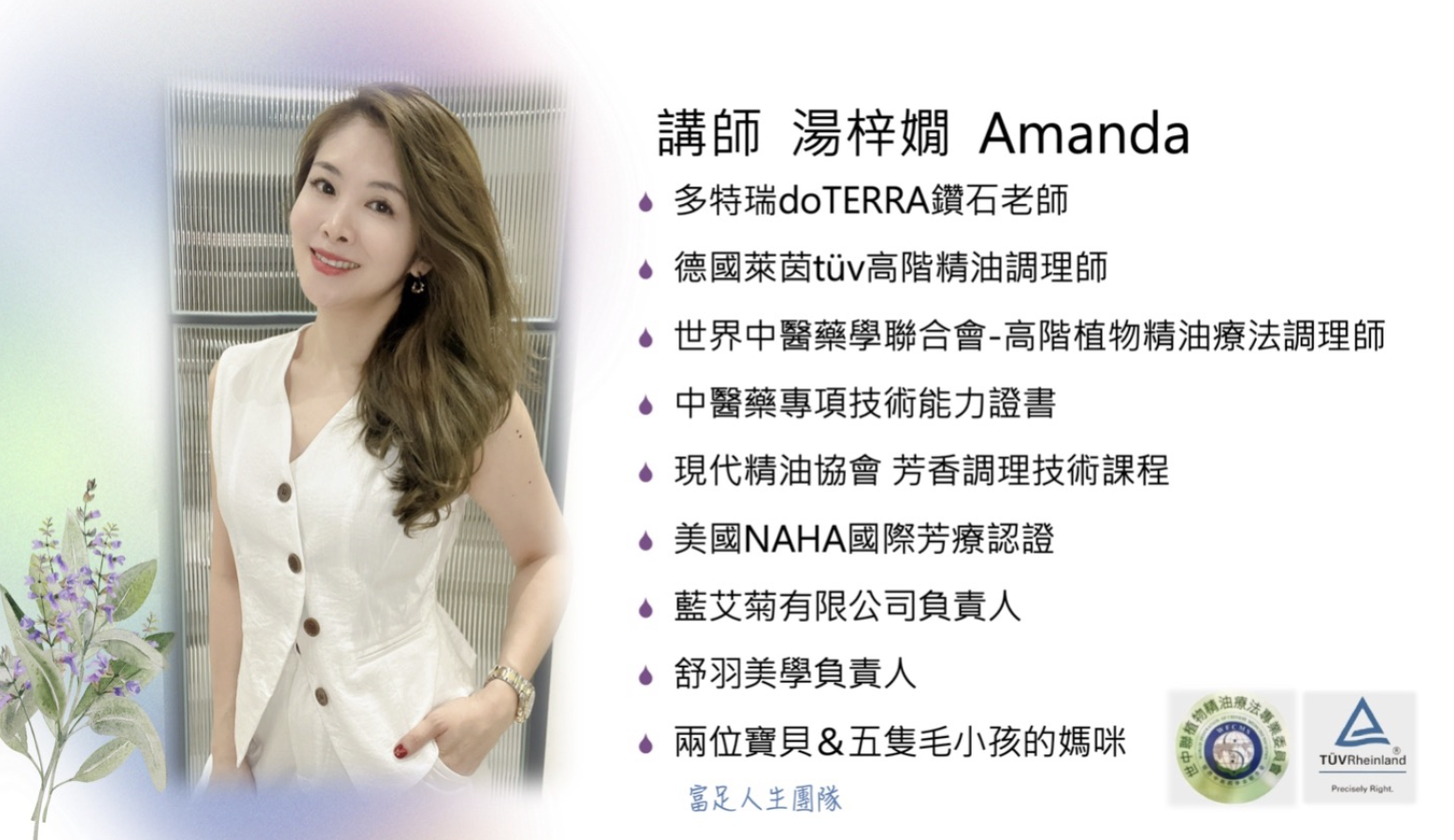 - 孕婦、嬰幼兒、或有特定疾病者:: 應事先諮詢專業芳療師或醫師,並避免使用特定精油(如迷迭香、薄荷等),必要時需稀釋後使用。