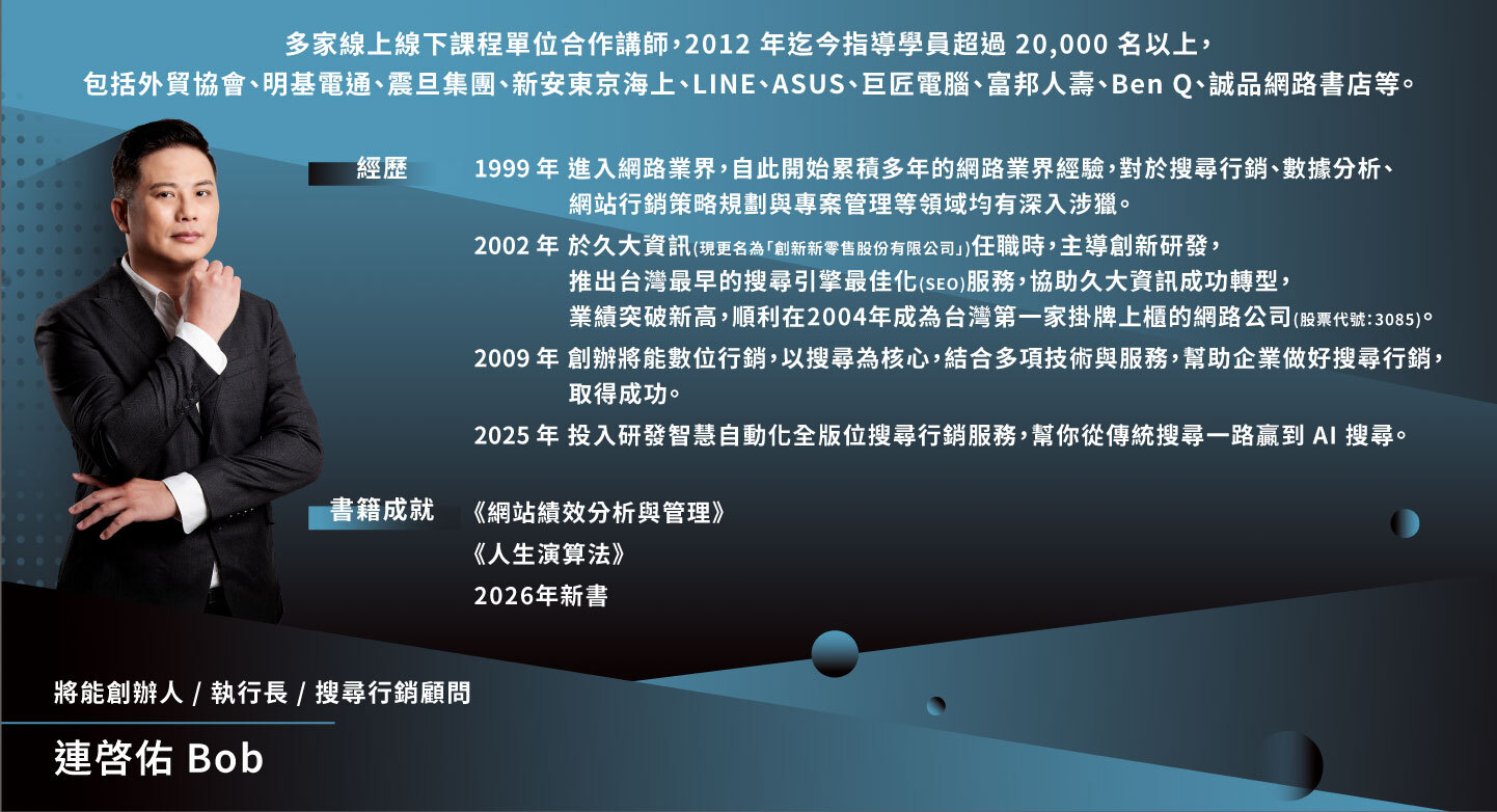 如果你想從 SEO 操作者,升級為 GEO 布局設計者,這場會給你完整轉型視角。
