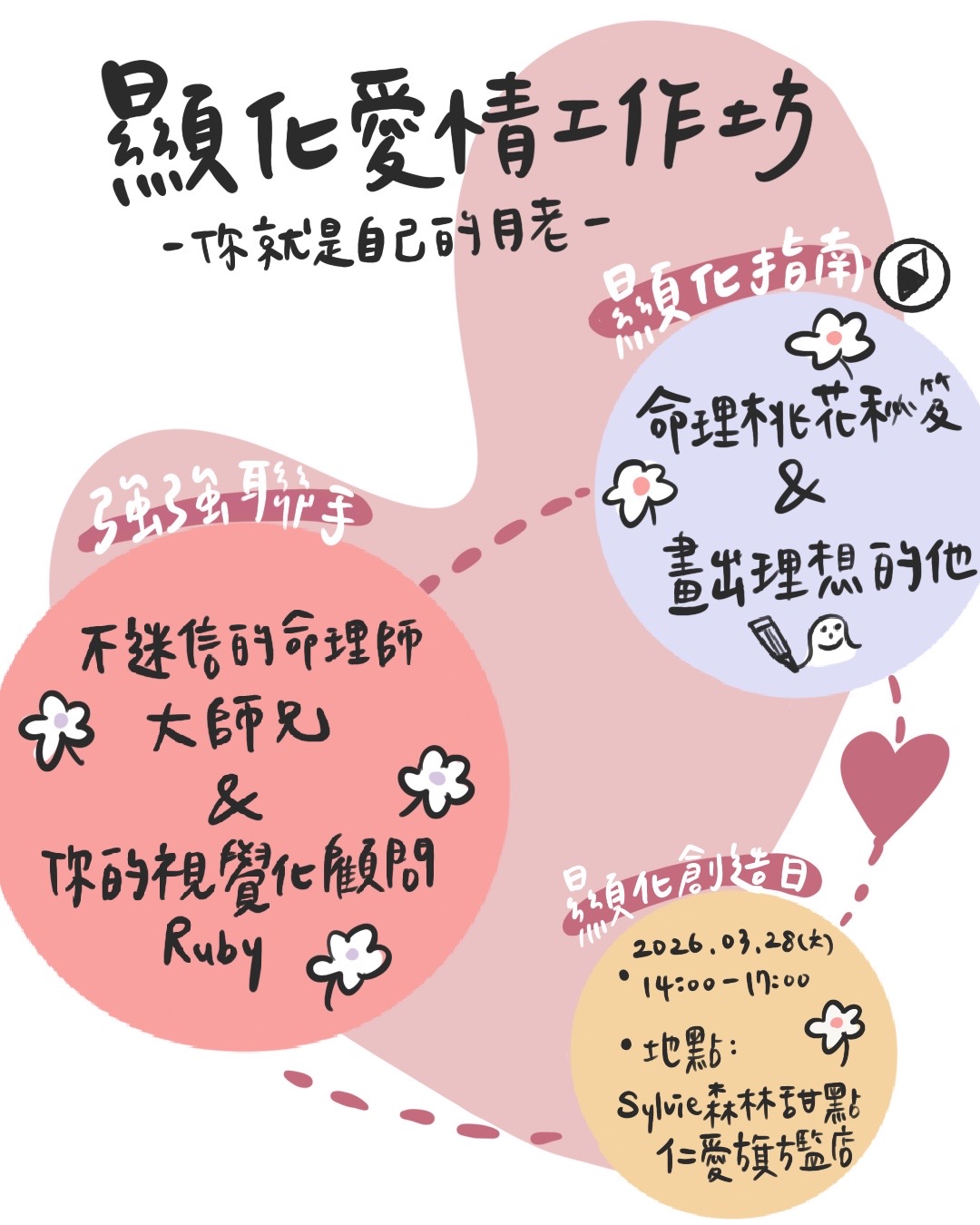 Ruby視覺化顧問 與 紫微斗數林尚諾(大師兄) 將在3/28舉辦顯化愛情工作坊。