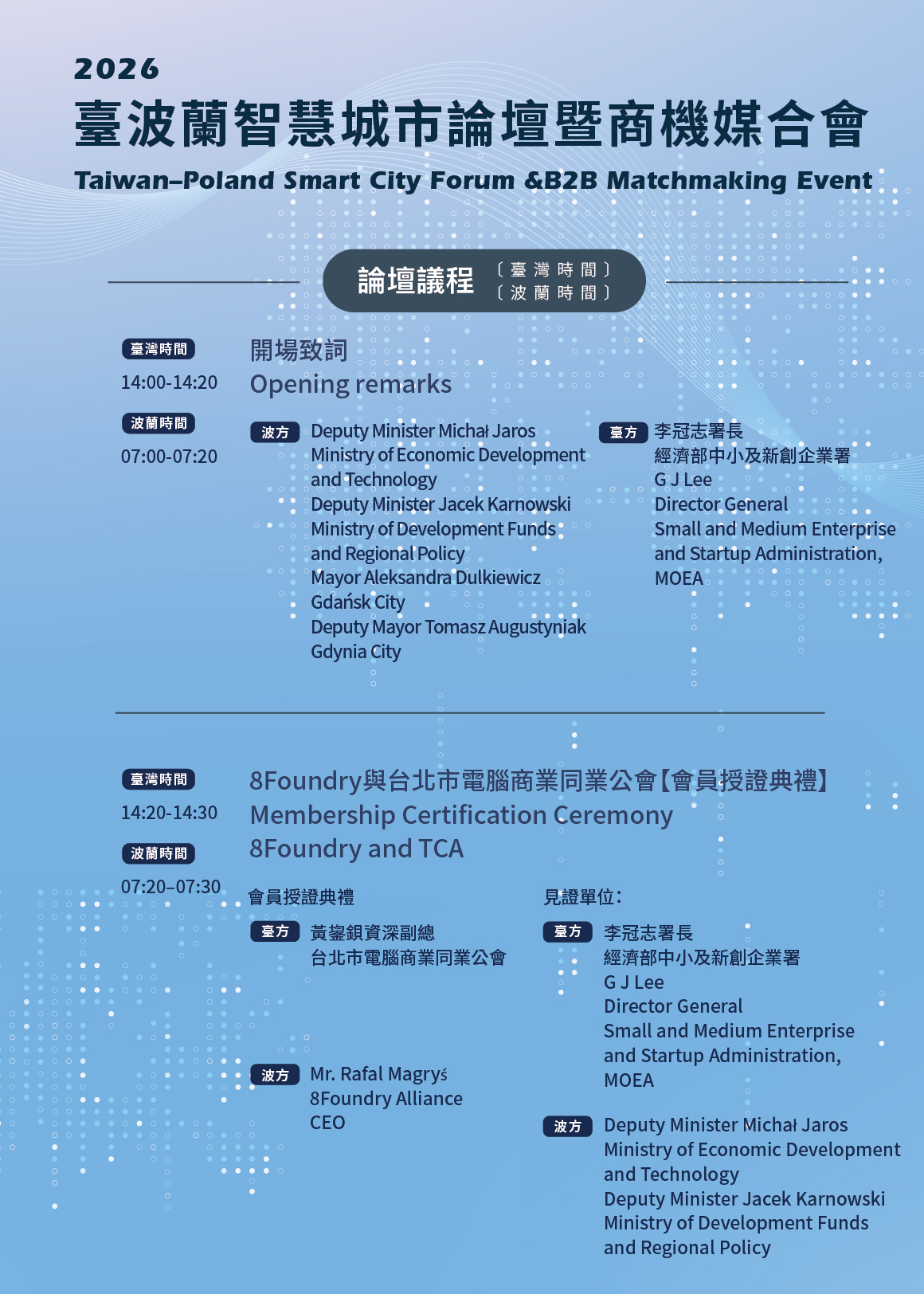 - 2026 臺波蘭智慧城市論壇暨商機媒合會