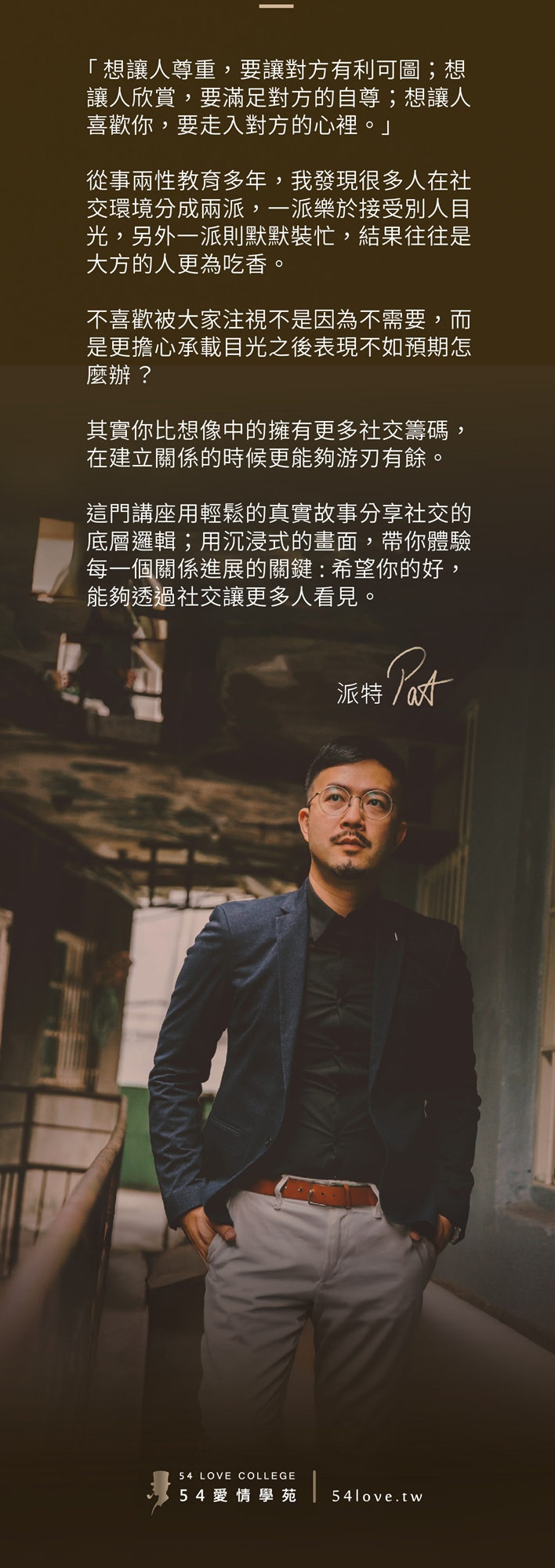 54 愛情學苑是台灣戀愛教學產業的始祖,20 年來出版過9本暢銷書。