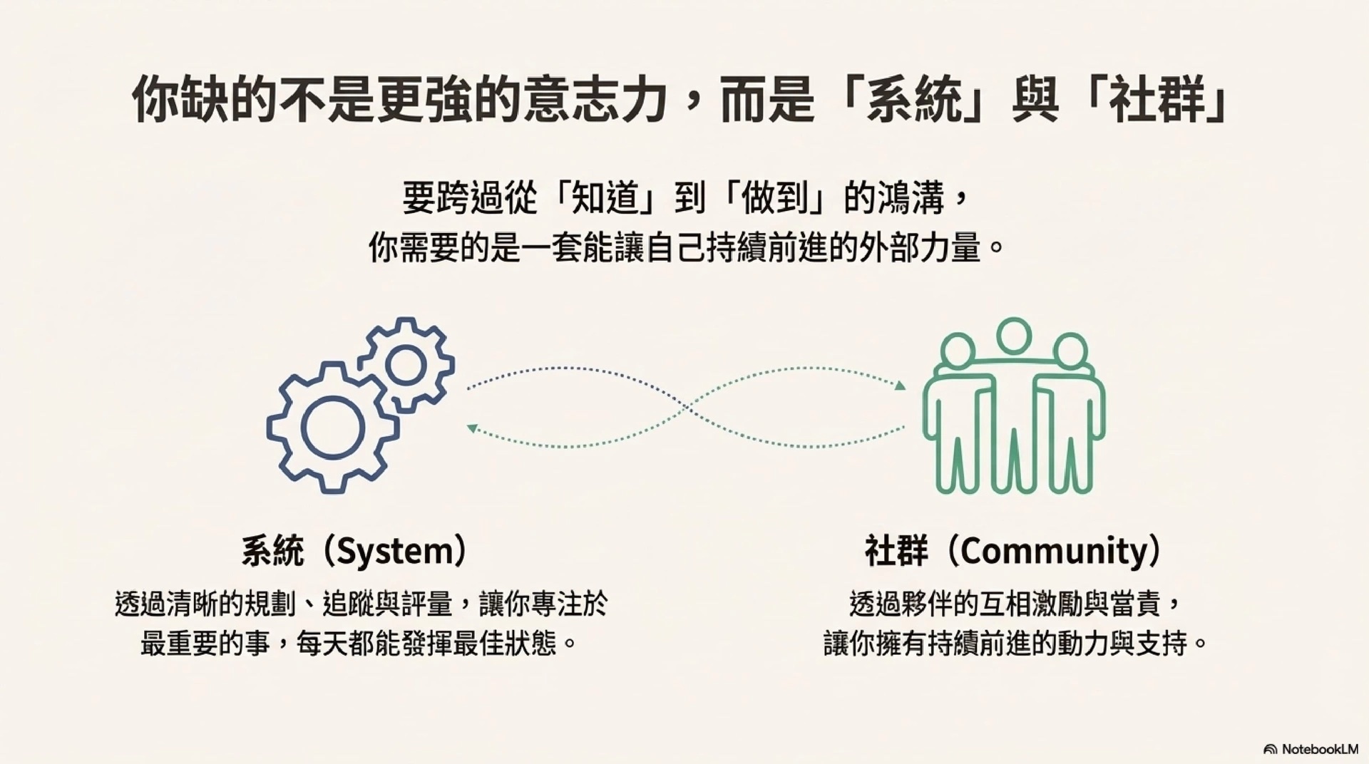 而是要懂得透過「系統」與「社群」,讓自己得以持續前進。