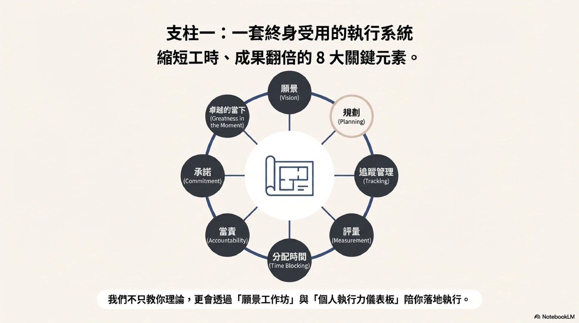 我們把《12 週做完一年工作》一書中的系統,變成 13 週的實戰課程,配上每週的教練指導、同儕的激勵互誇、數據的即時追蹤,讓你不只「知道」如何做,更「做到」你夢寐以求的目標。