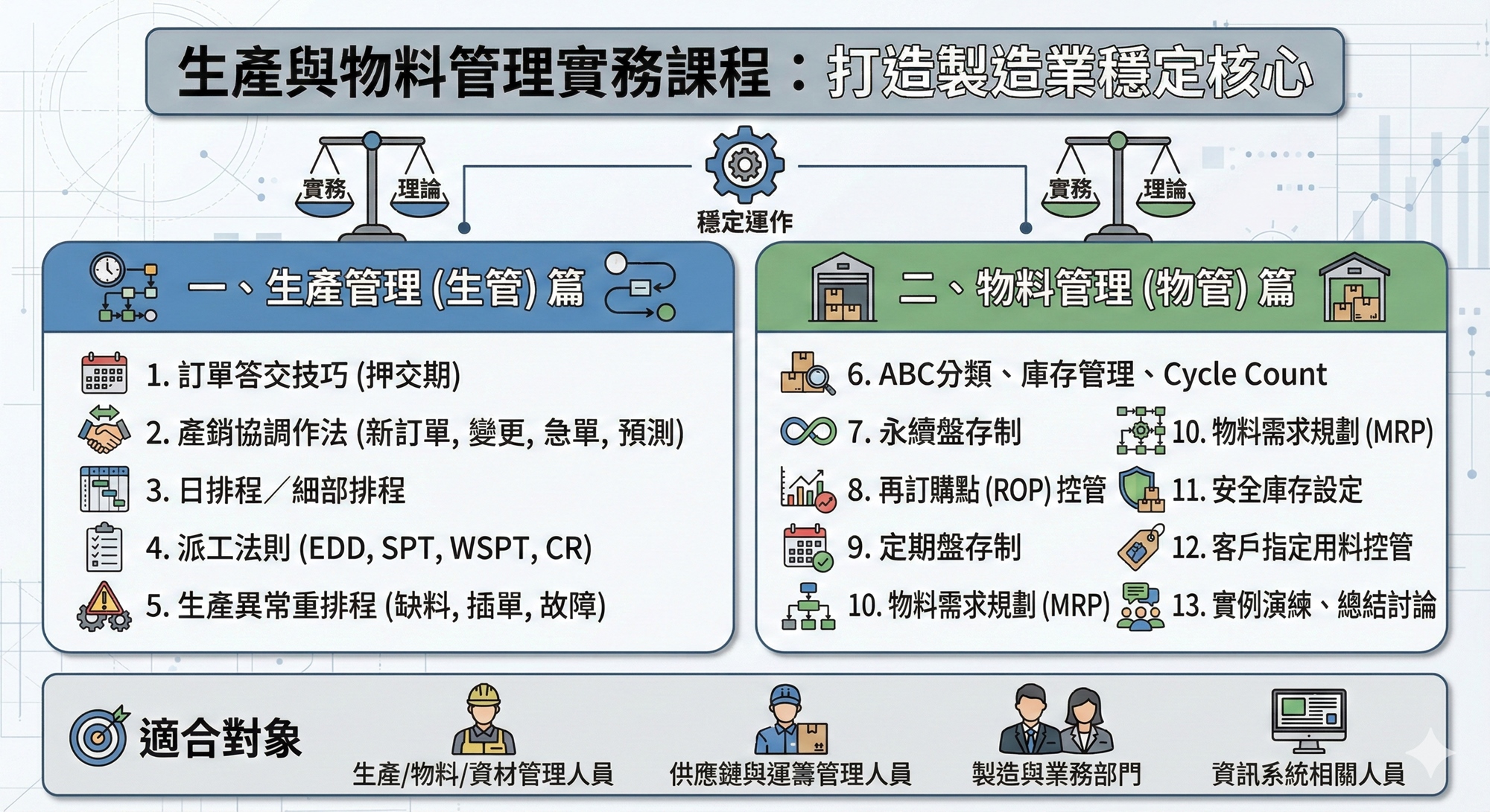 生產管理(生管)與物料管理(物管)是製造企業穩定運作的核心。
