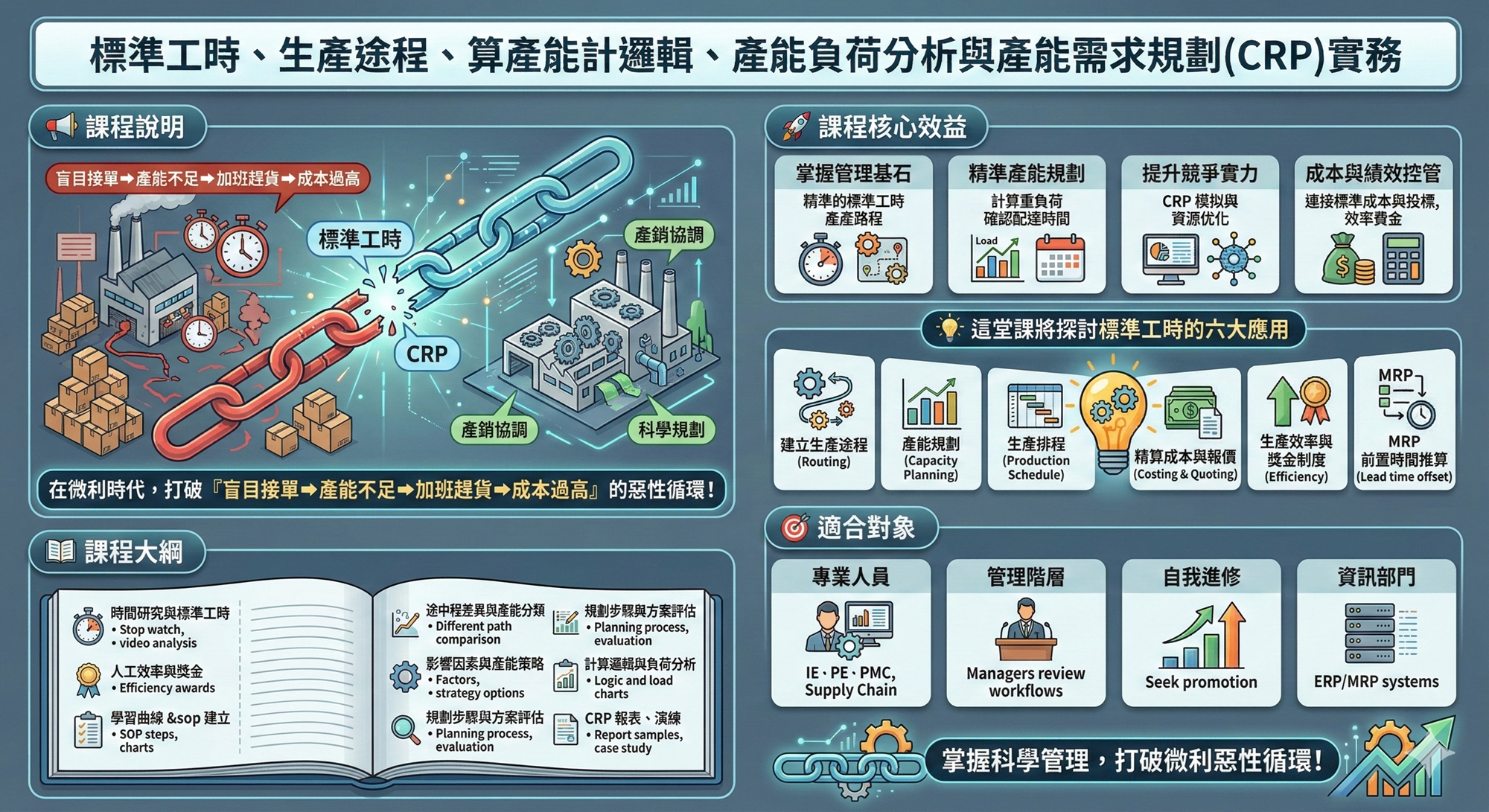 3. CRP (產能需求規劃) 實務 📊 學會看懂報表,學會產能方案評估(自製、委外、還是蓋新廠?)。這才是管理階層該懂的策略思維。