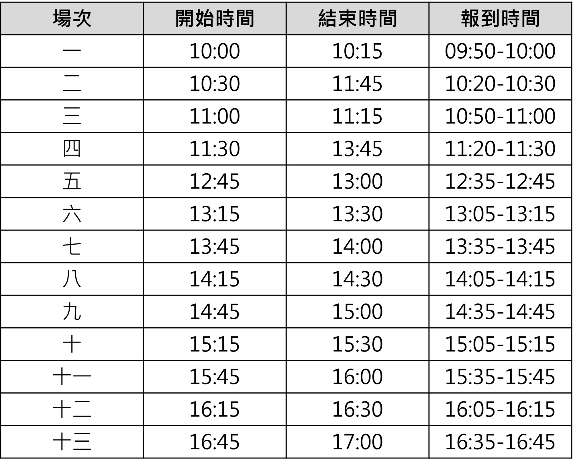 2.活動時間:每日 10:00-17:00(每日 13 場,每場約 15 分鐘)。