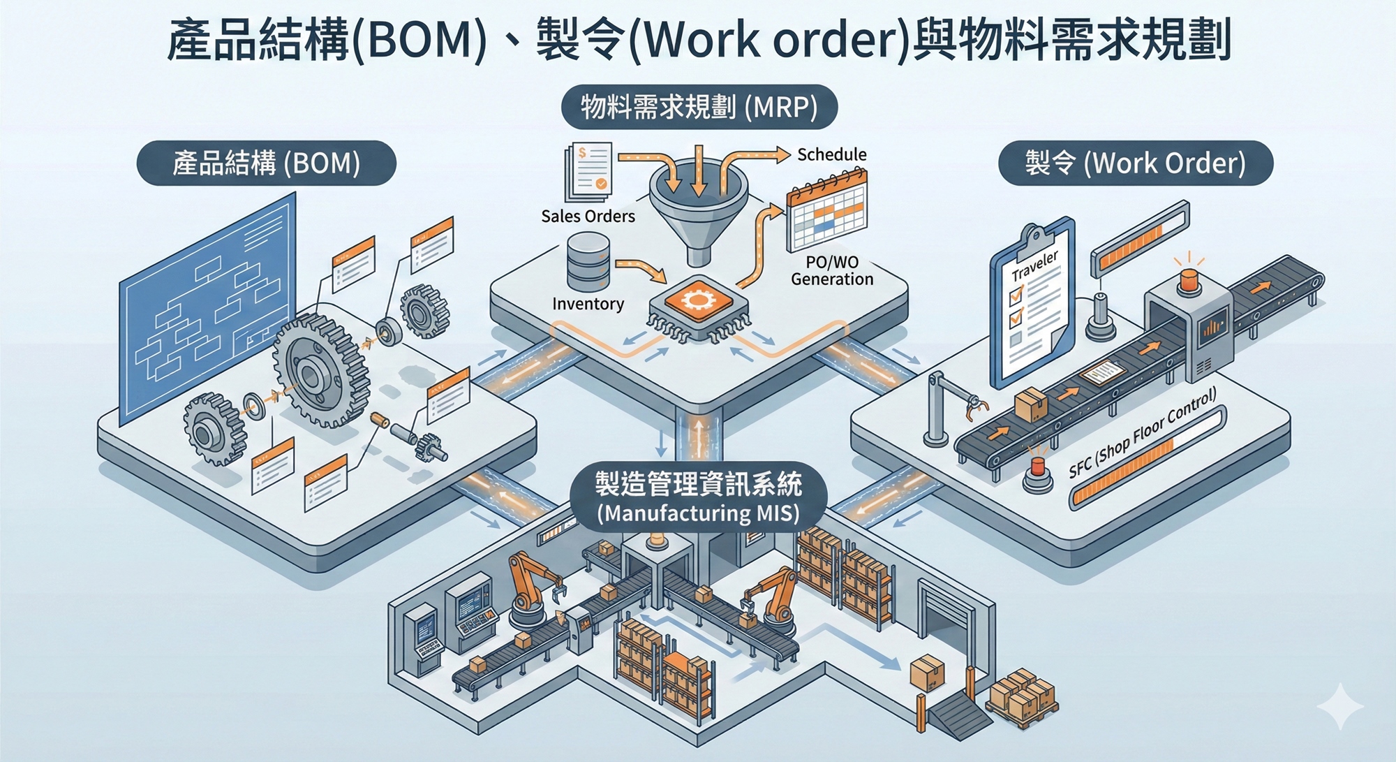 精通製令監控技術:掌握生產進度監控 (SFC) 與 Back flush 扣帳,有效處理訂單異動後的材料處置。