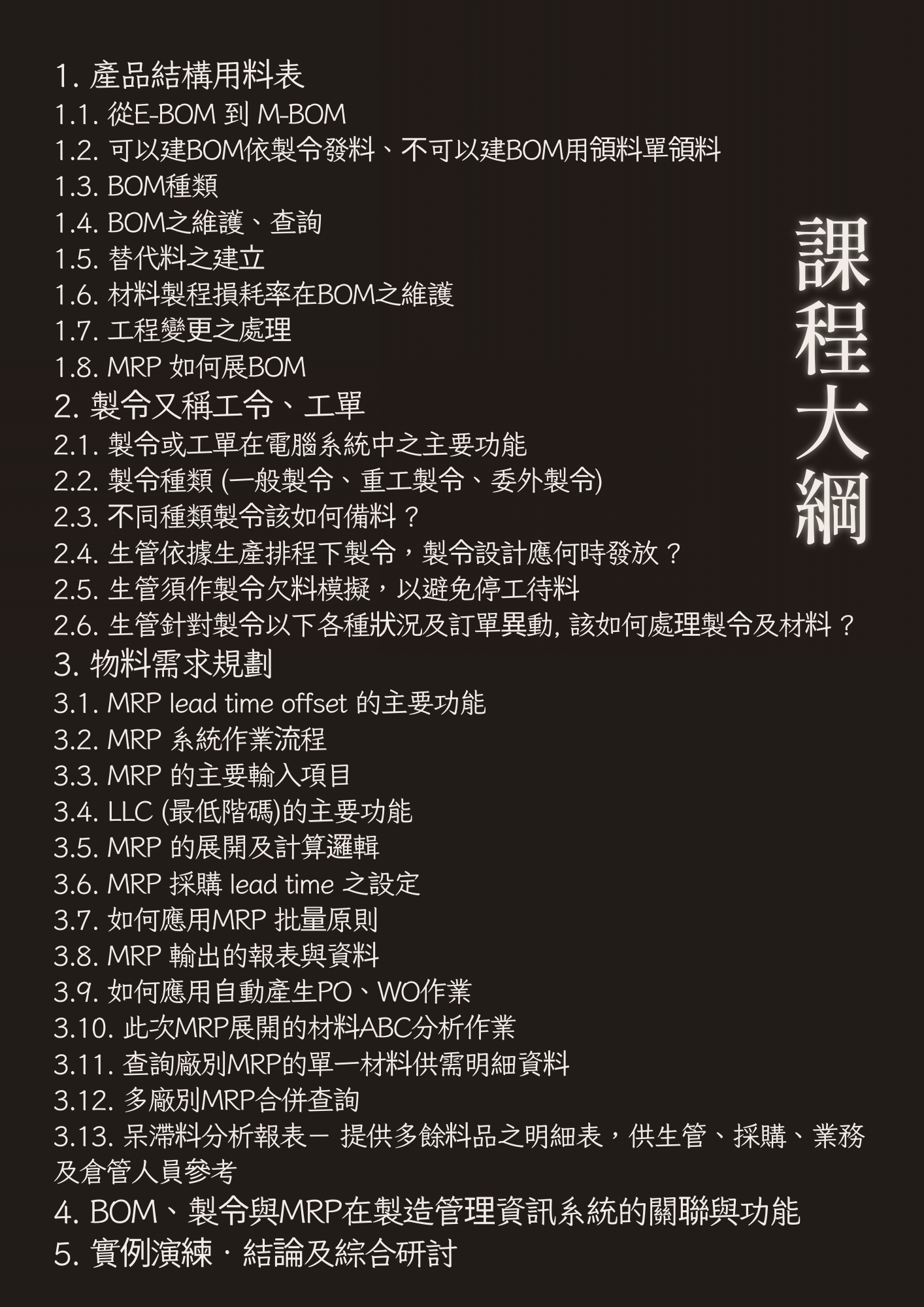 系統化解決對策:不僅教操作,更教導物料需求規劃的「哲學」與存量管制的日程安排方法。