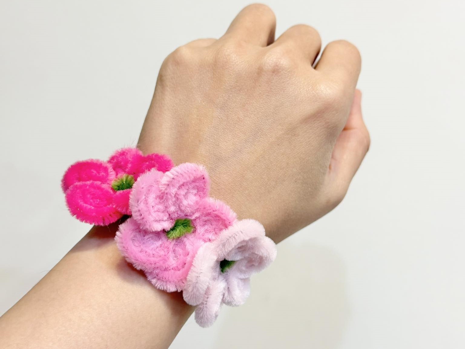 透過柔軟的毛根素材,孩子們可以捲出花瓣與葉片,自由搭配色彩與造型,製作一款獨一無二的花之精靈手環。