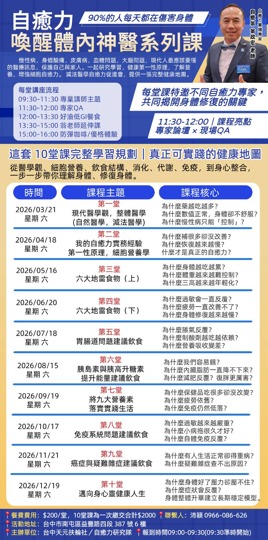 自癒力喚醒體內神醫系列課(如下列系列課程內容說明)