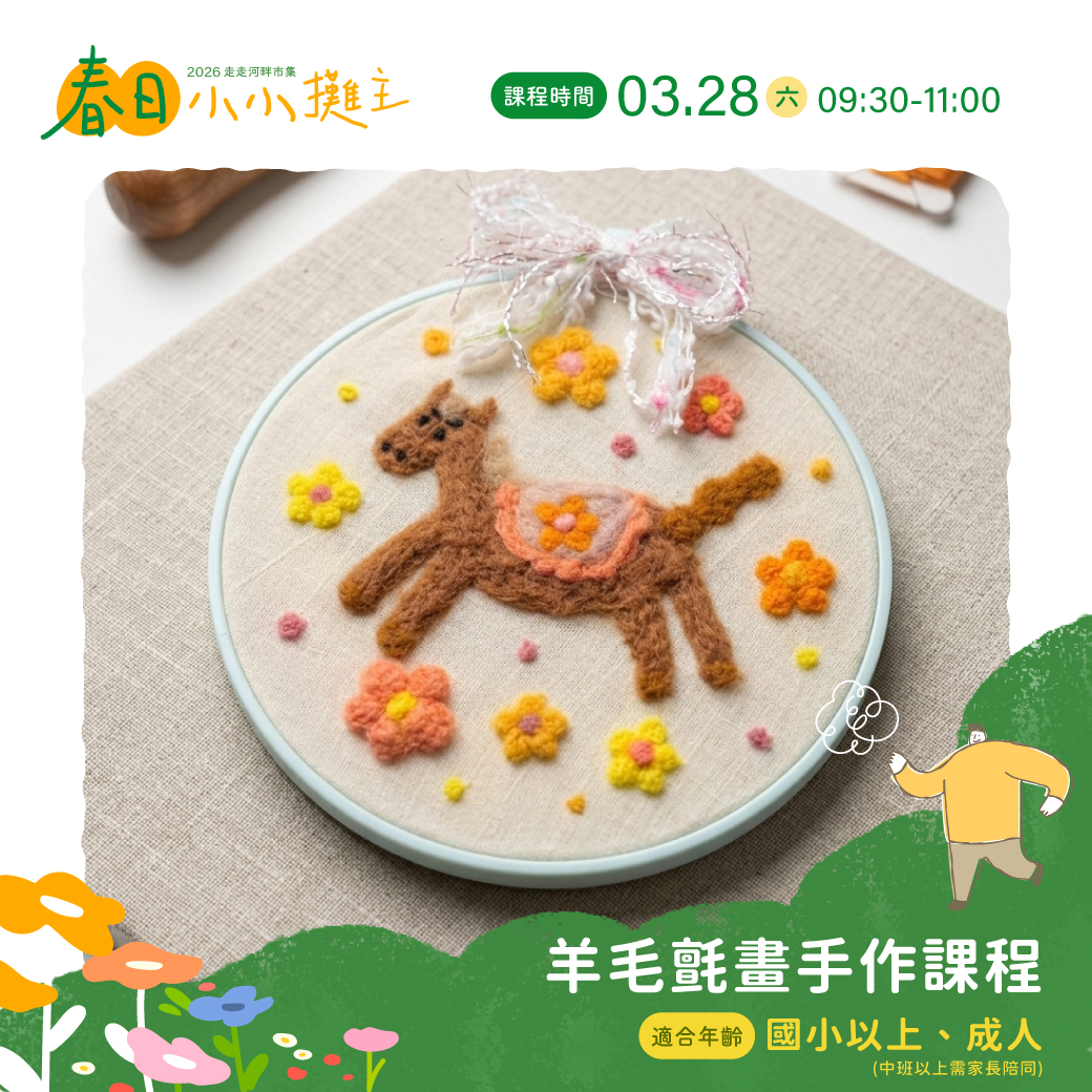 將以柔軟的羊毛,在繡框布面上層層堆疊色彩,用專用針一點一滴塑形,感受纖維交織的細緻質感與療癒聲響。