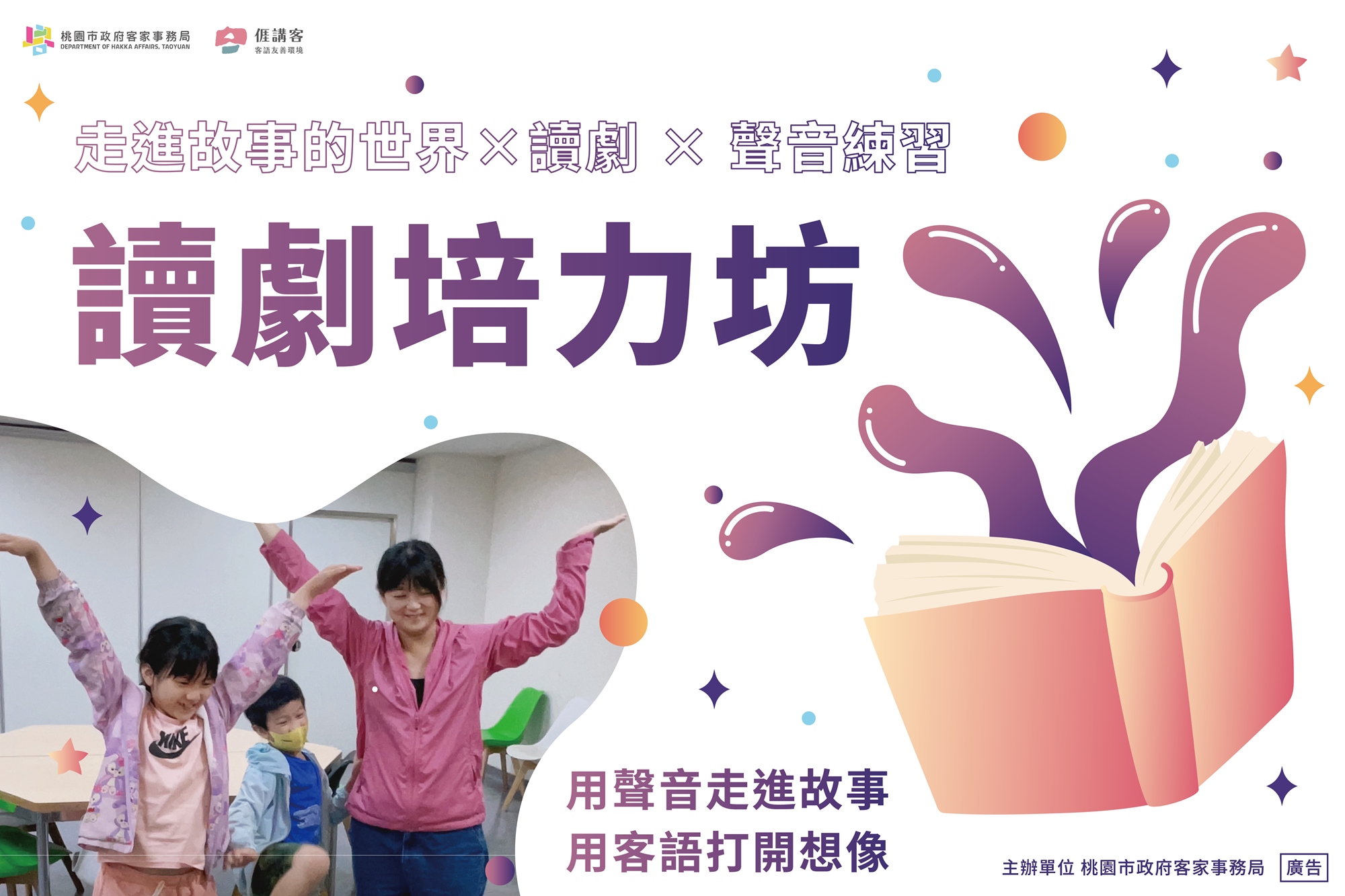 不限年齡,對讀劇、聲音表達或客語文化有興趣者皆可參加。