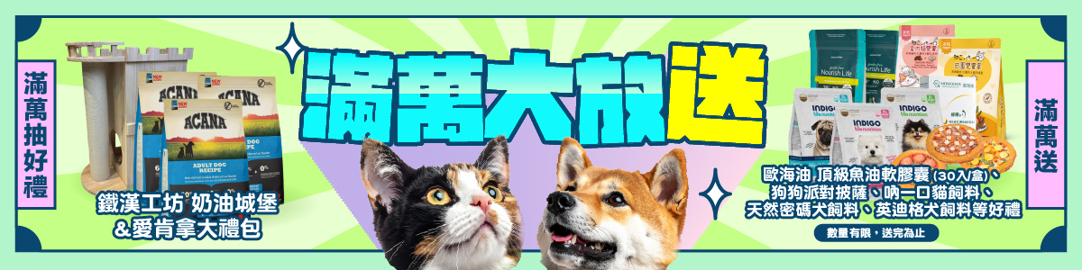 加碼送:歐海油 頂級魚油軟膠囊 (30入/盒) 、喜翻 JOLLYROLL 狗狗派對披薩、品牌飼料等好禮,數量有限、送完為止!
