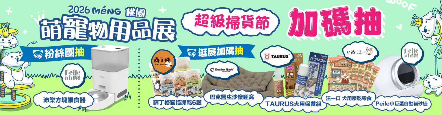 逛展抽豪禮:薛丁格凍乾&巴克醫生沙發睡窩&Peile小巨蛋貓砂機&TAURUS犬用保養組&汪一口 犬用凍乾零食