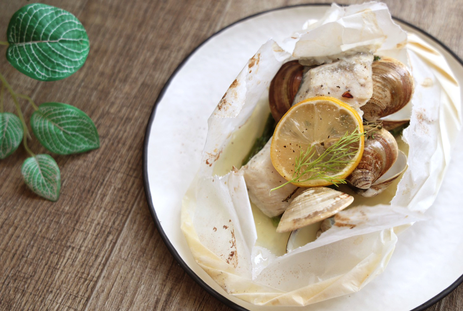 魚肉與春季香草一同被包裹,在烤箱中緩緩蒸熟,打開紙包的瞬間,香氣如同春日微風般悄然散開,清爽而純粹。