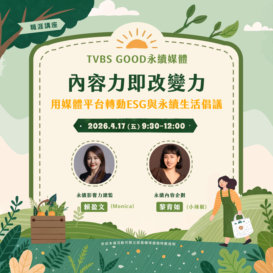 🚩 講師:TVBS GOOD永續媒體 / 永續影響力總監賴盈文、永續內容企劃黎育如