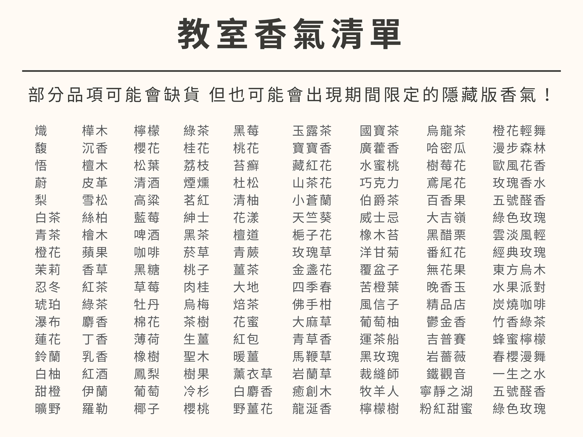 - 請勿攜帶 外食(手搖飲可),亦請避免使用香水或影響嗅覺的產品,讓每位參加者都能感受最純粹的香氣變化。