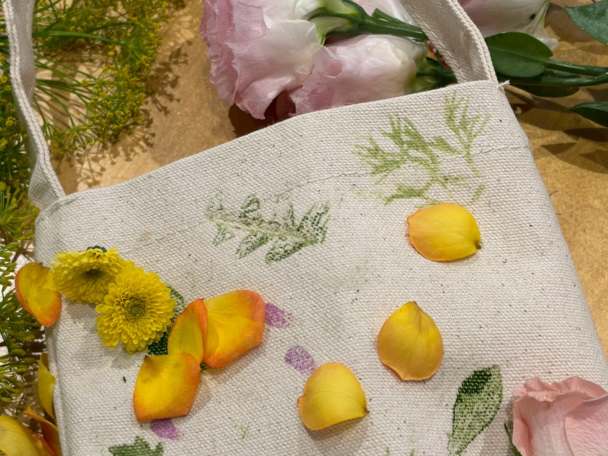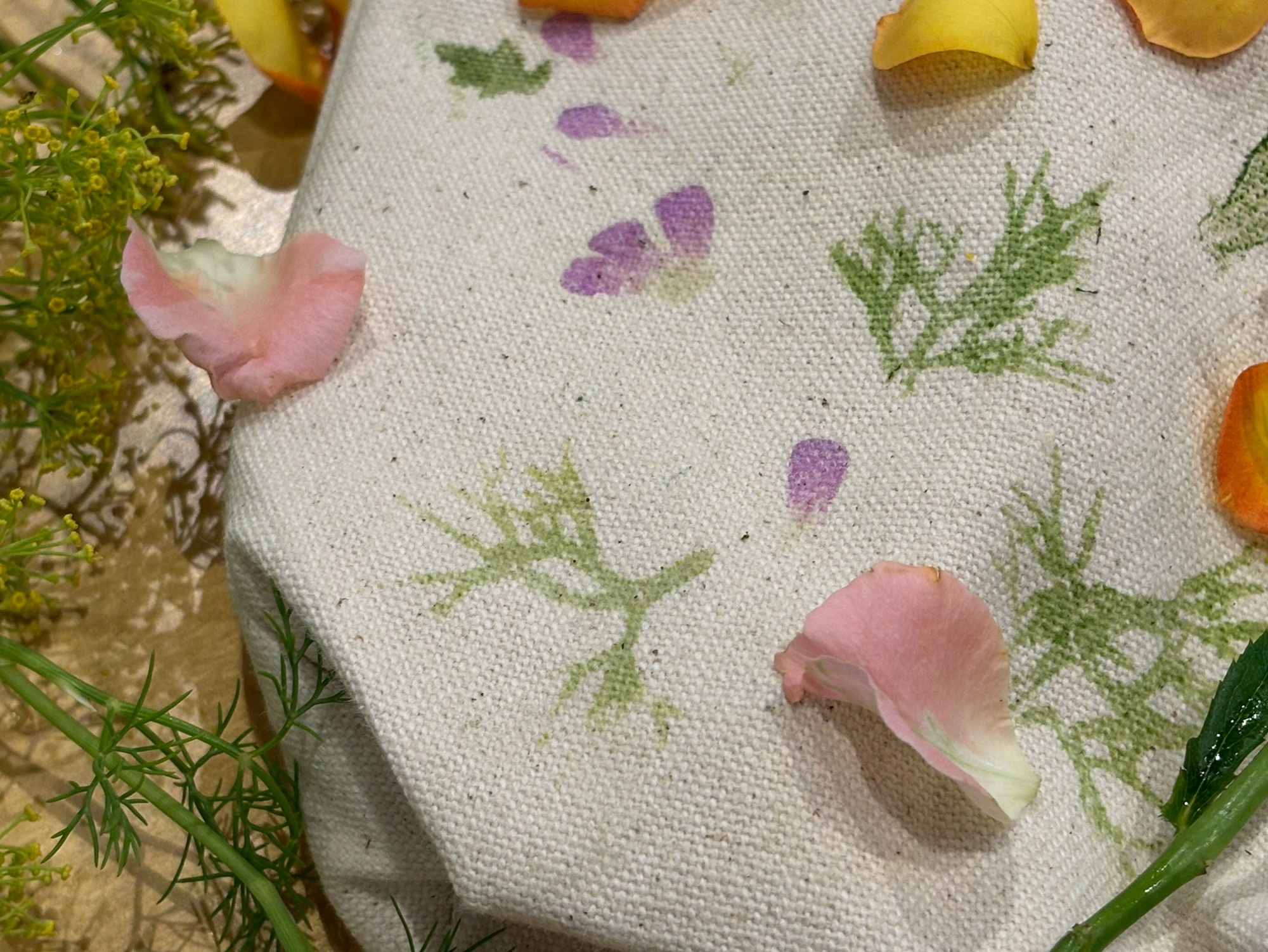 將植物放置在布上形成一條路。