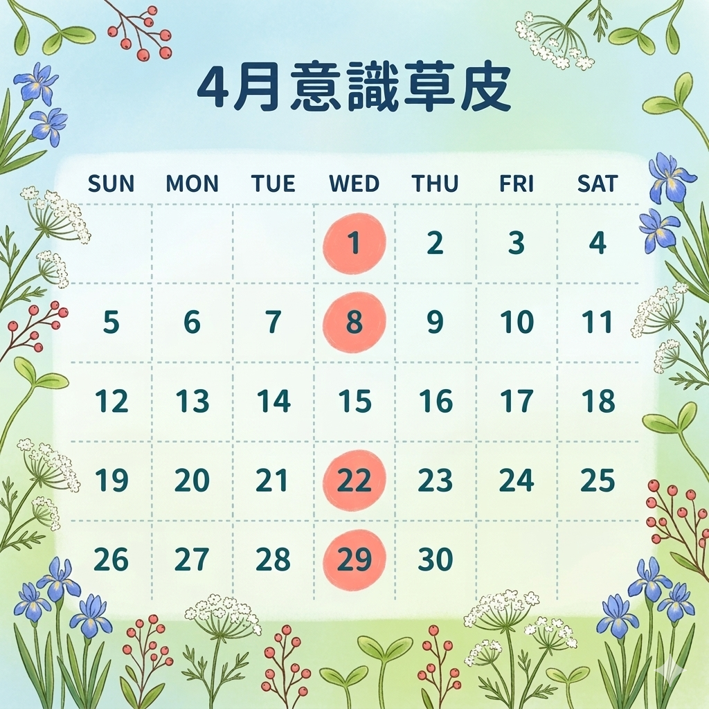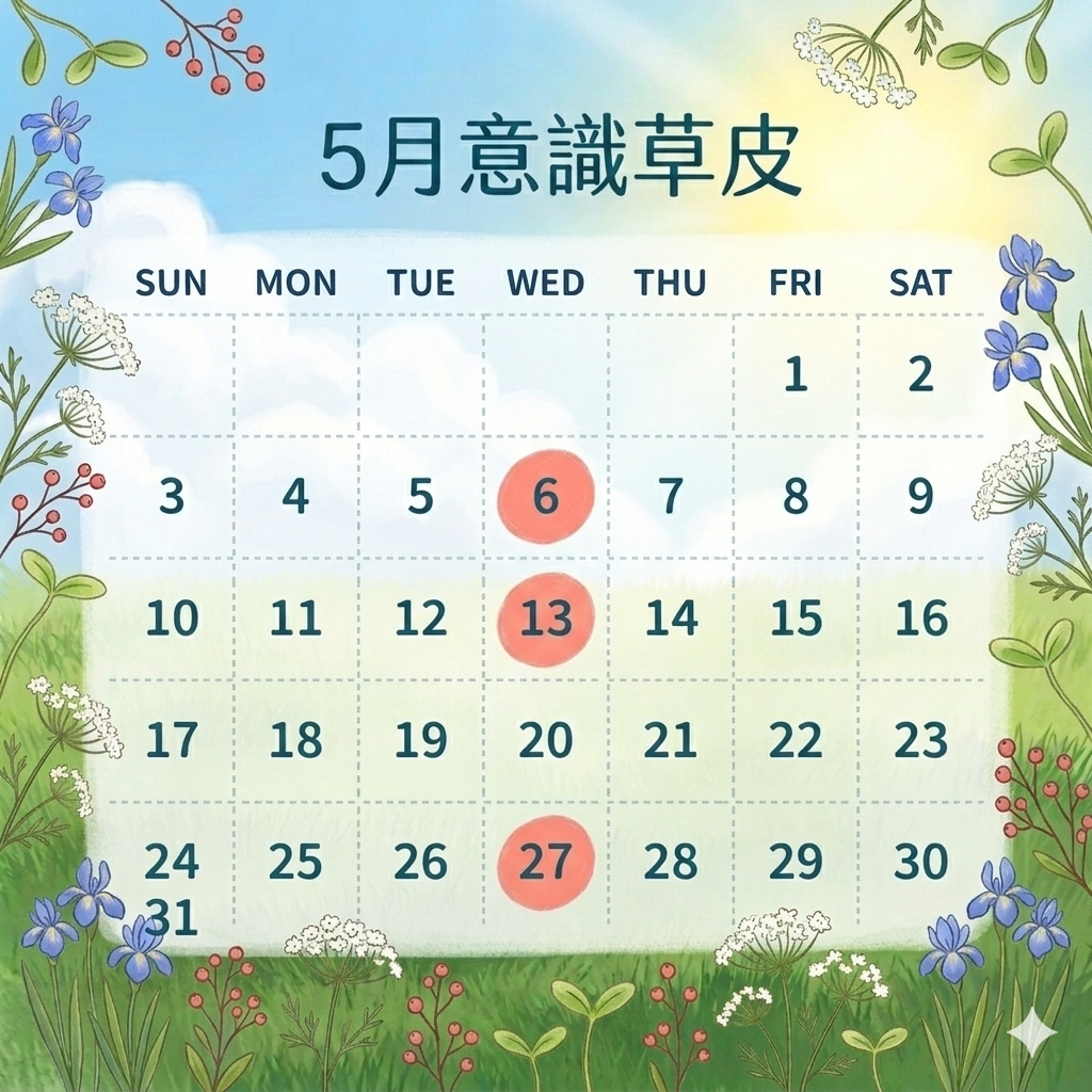 ★ 意識草皮原為每個月都會舉辦的公益活動,會依據主辦的時間,有時會有暫停練習,您可以加入社群追蹤有舉辦的時間,或使用Line官方帳號的自動查詢系統,將每月活動時間加入您的行事曆。