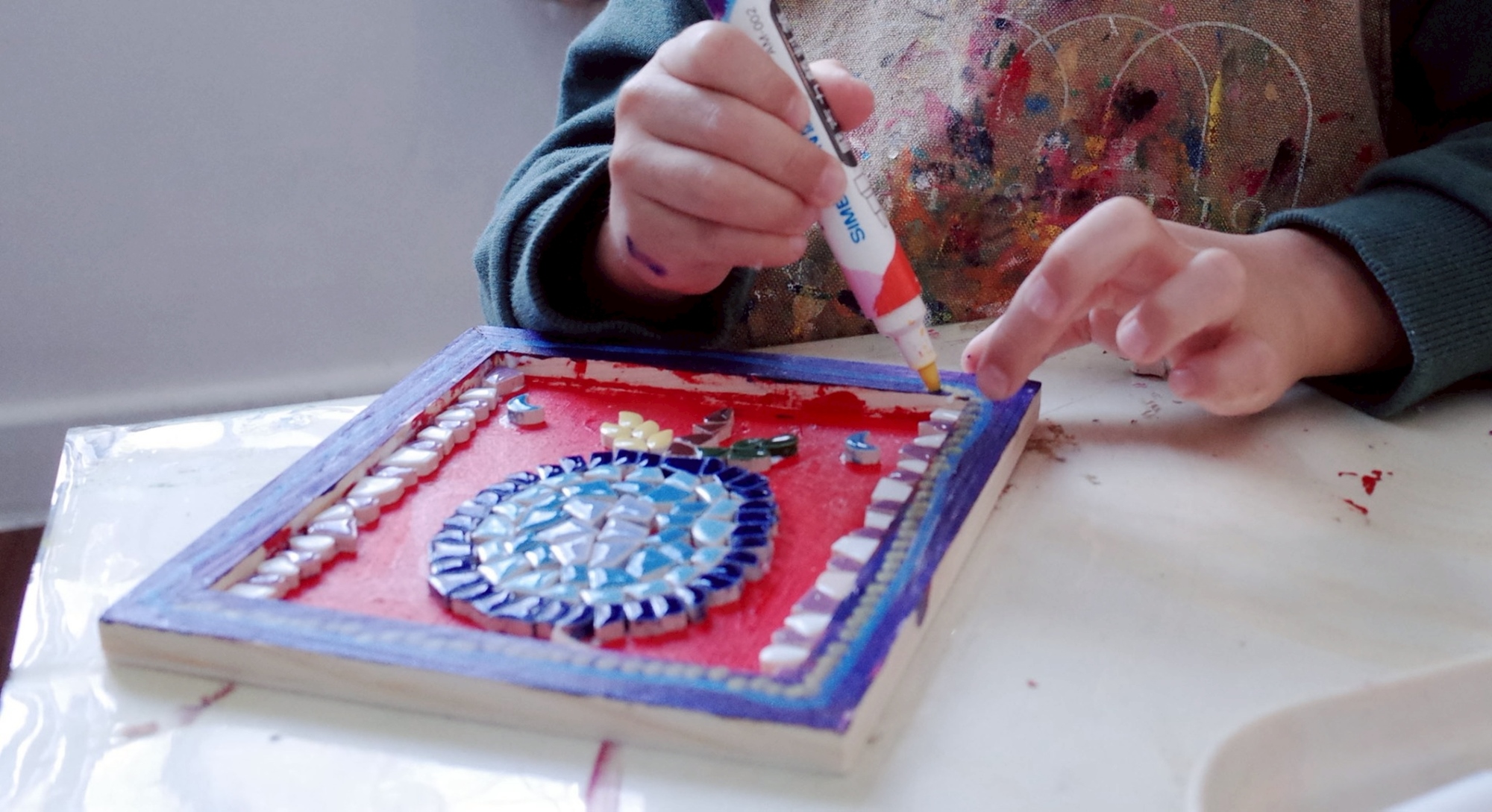 活動以繪本為起點,融合繪畫與馬賽克創作,讓故事不只停留在書頁,而是透過顏色、線條與多元素材,被重新詮釋、延伸成一場可觸摸、可感受的閱讀體驗。透過動手創作,孩子能將書中的情節與情感轉化為自己的作品,在閱讀、觀察與實作之間,發現故事的更多可能,也用不同方式親近閱讀、走進書的世界。