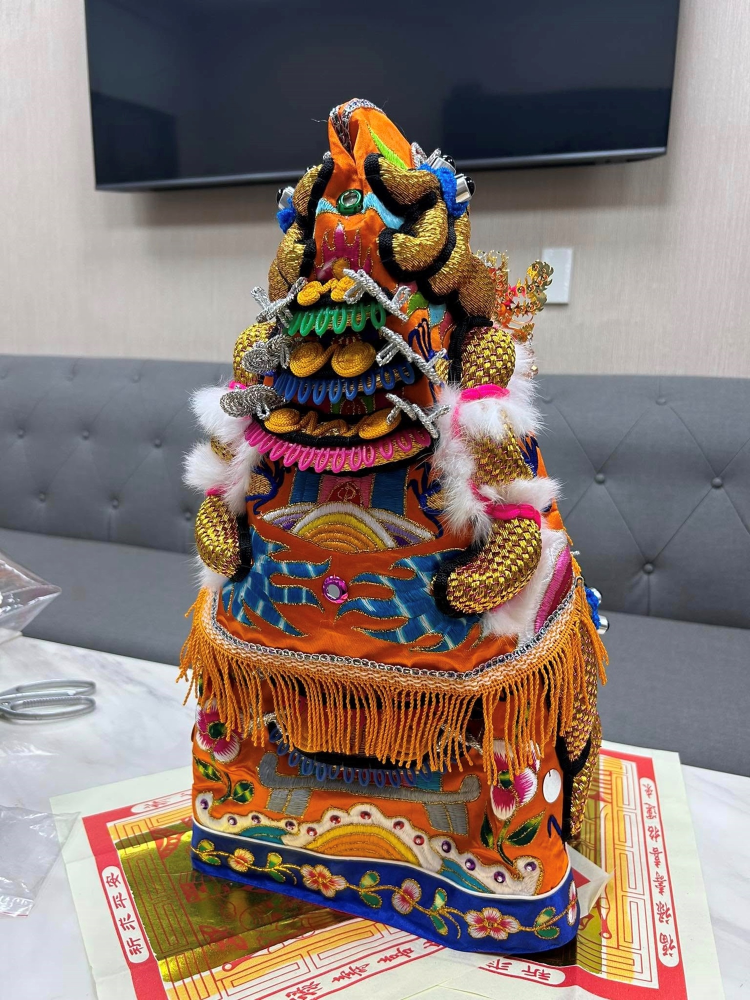 - 近距離觀察: 金銀絲線交織出的工藝細節。