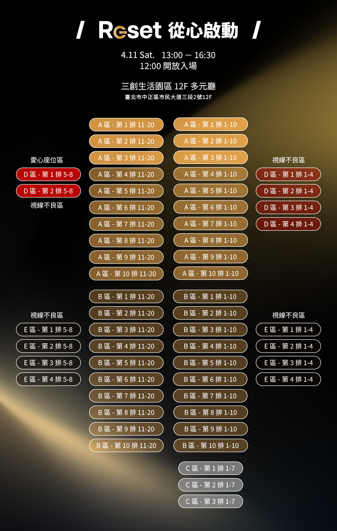 -部分座位屬視線不良區,無法直接面對舞台,介意者購票前請留意