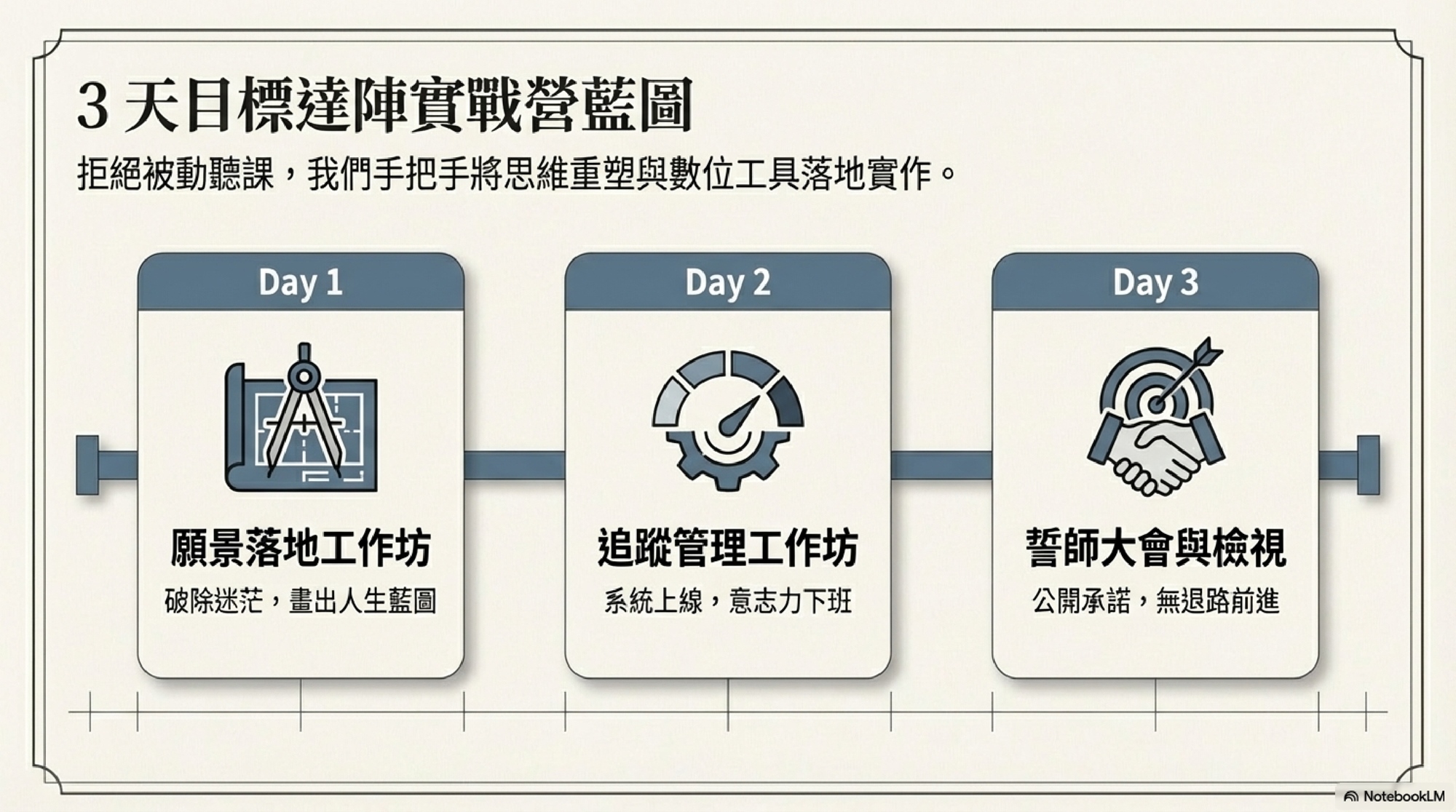 📍 第二天:追蹤管理工作坊(系統上線,讓意志力下班的自動導航)