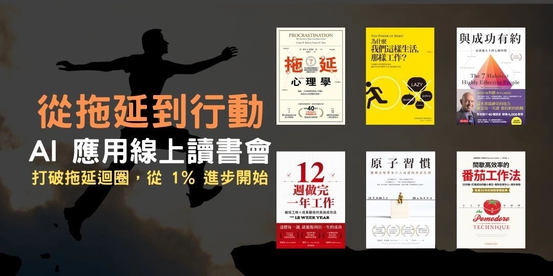 ✅ 2026 年 1 月到 6 月,我預計在線上舉辦《從拖延到行動》AI應用線上讀書會,分別會分享這 6 本書: