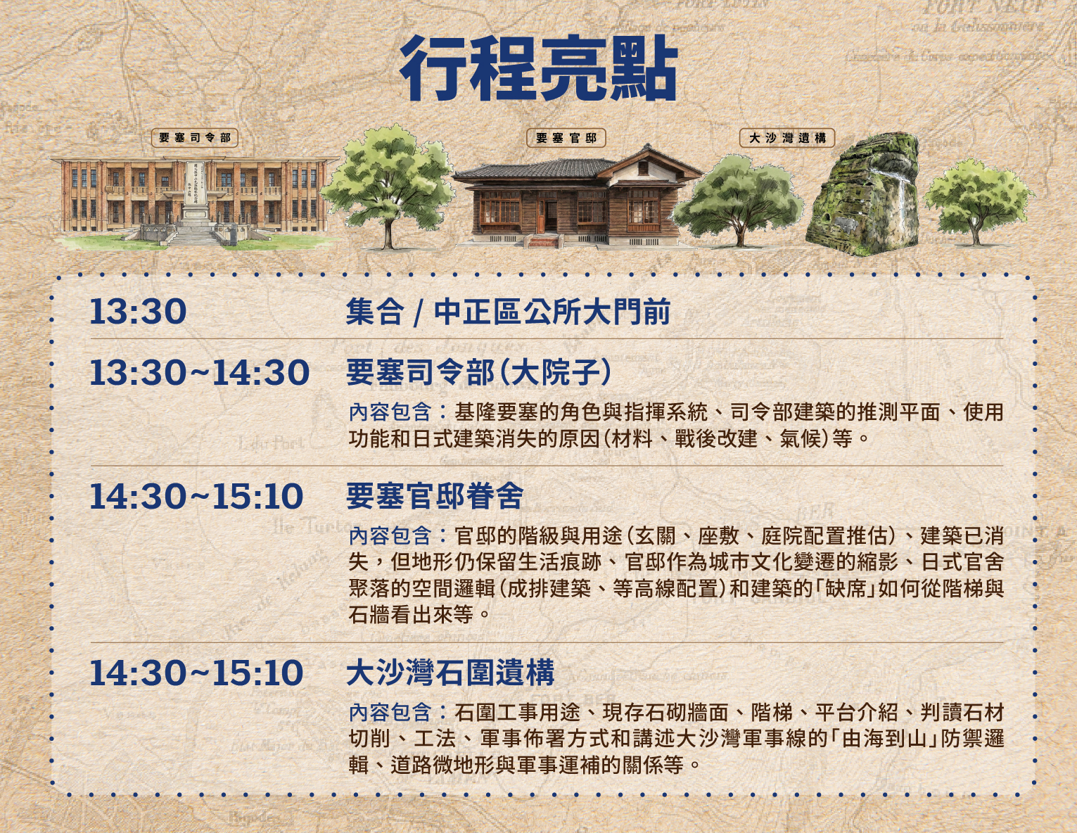 📍 導覽地點|要塞司令部→要塞官邸→大沙灣石圍遺構