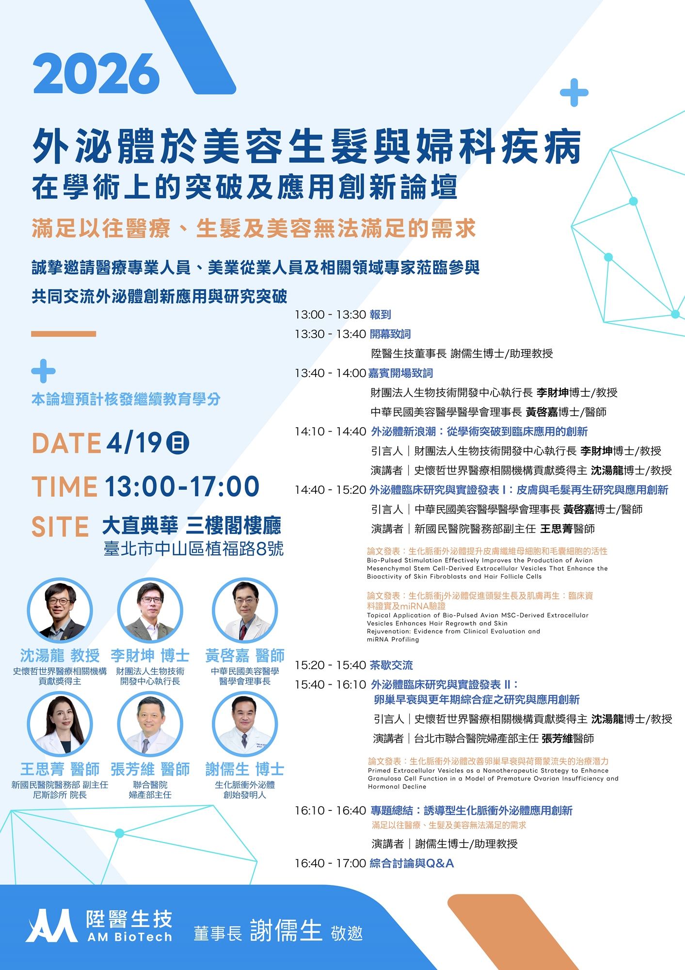 誠摯邀請醫療專業人員、美業從業人員及相關領域專家蒞臨參與共同交流外泌體創新應用與研究突破