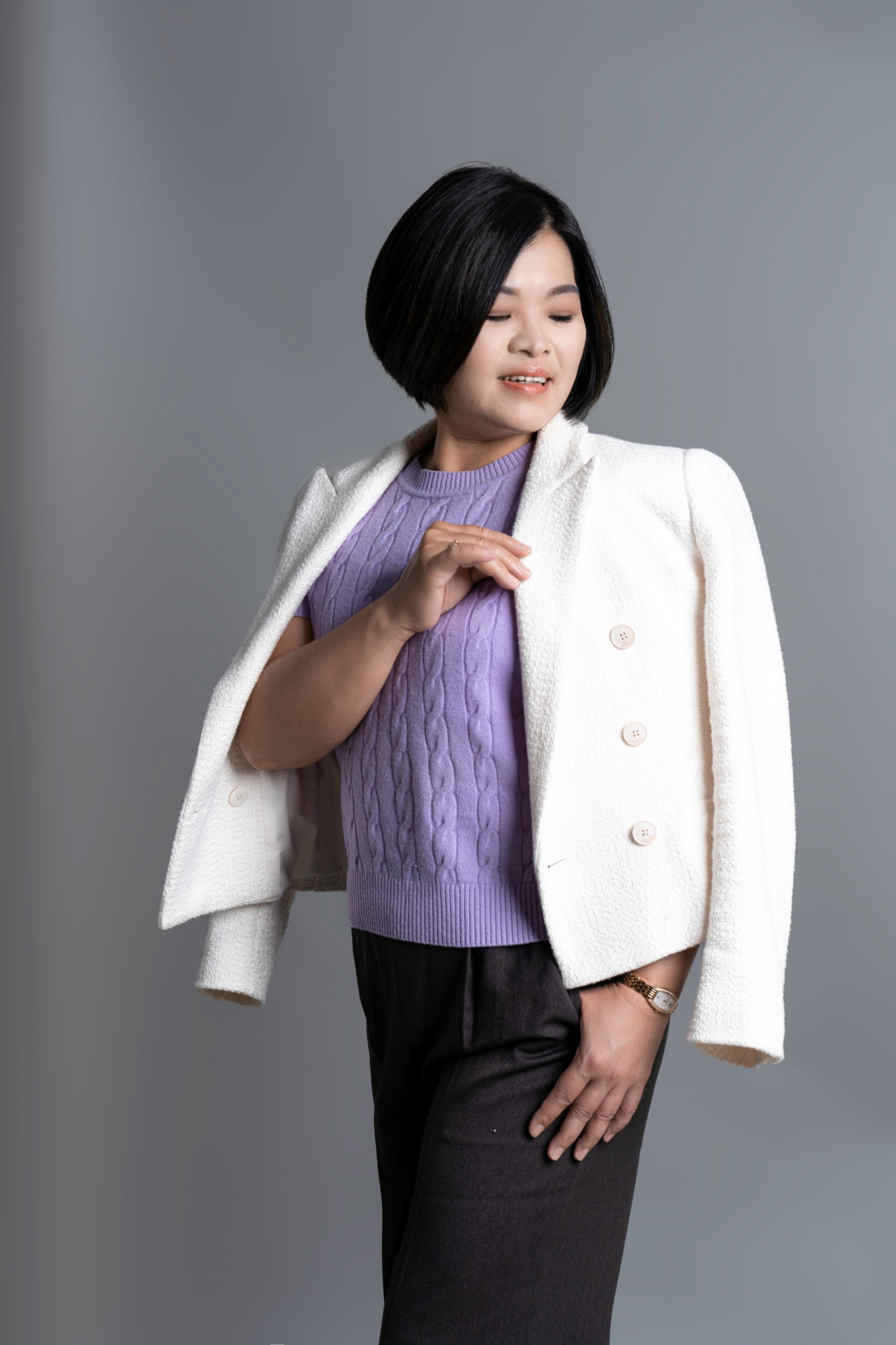 ✔ 常被說「很有距離感」的女生,換上細針織材質及柔和色彩,能夠為妳加分。