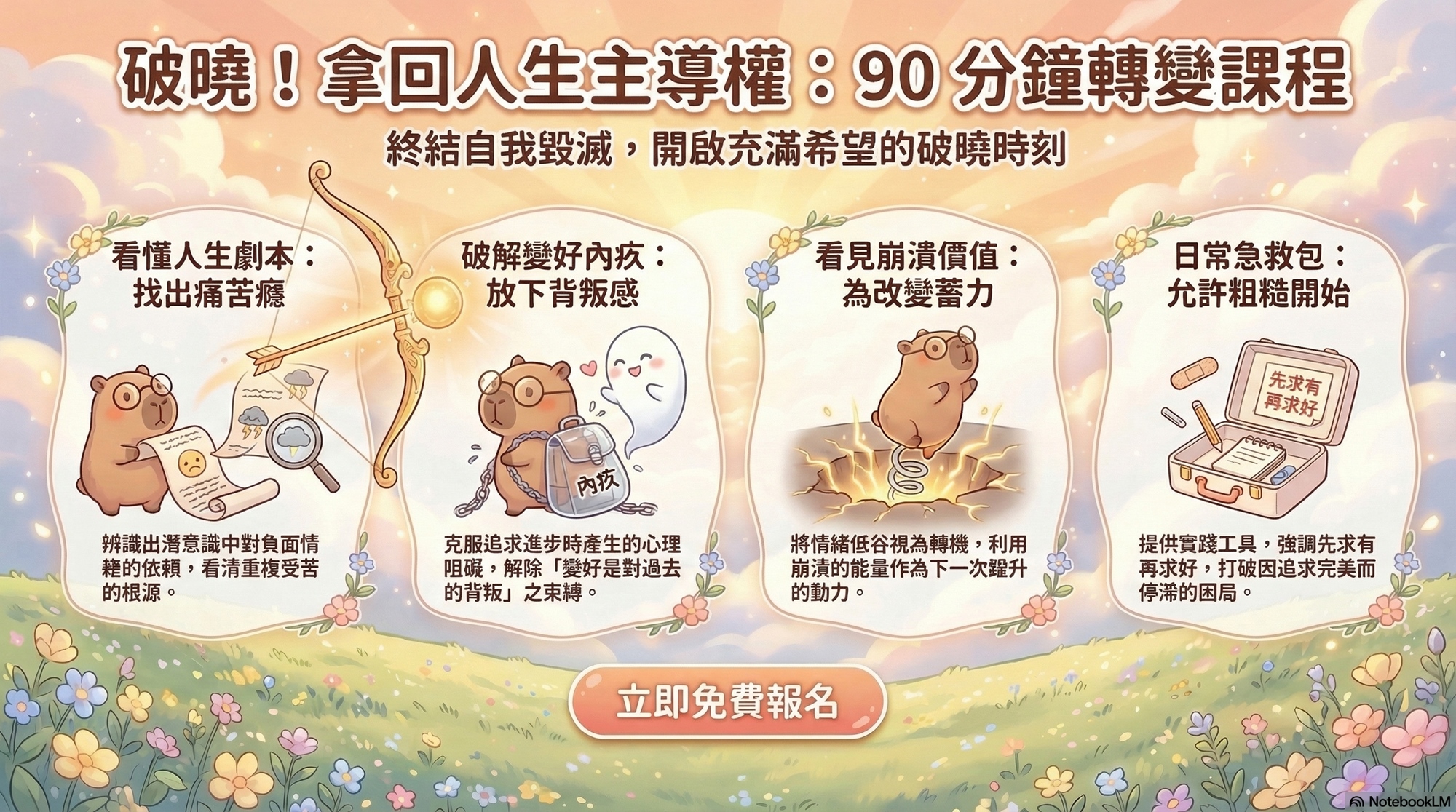 在這堂 90 分鐘的溫馨講座中,我們將帶你揭開潛意識裡的「強迫性重複」機制。你會發現,原來我們不敢變好,是因為害怕「背叛」——害怕背叛原生家庭的受苦模式,害怕背叛過去那個在泥淖中掙扎的自己。