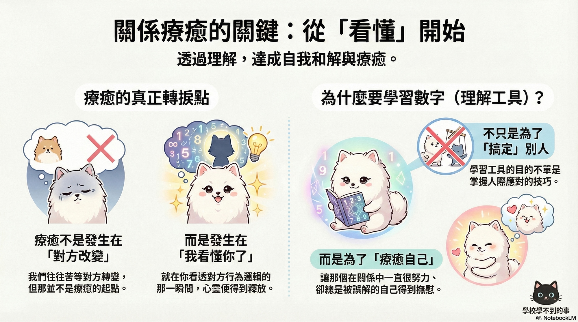 - 對應【深層隔閡】➔【看穿防護罩下的真心】:運用生命靈數透視對方的內在需求。不再盲目猜測,而是直接看懂他那些「彆扭行為」背後,到底是在討抱還是求助。