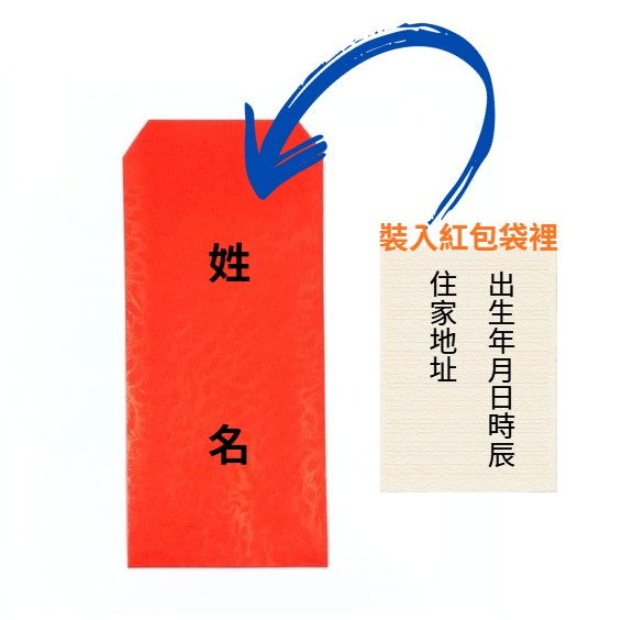 ✅ 紅包袋(外面寫姓名,內附出生年月日+出生時辰+居住地址)