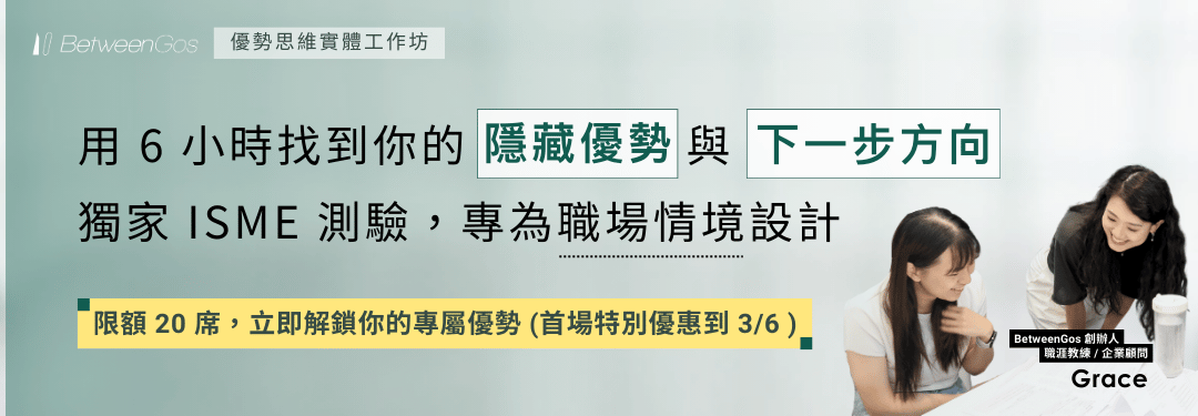 ① 隱藏優勢:報名含專為職場情境設計的「ISME 職場優勢測驗正式版」,協助你看見自己的隱藏優勢