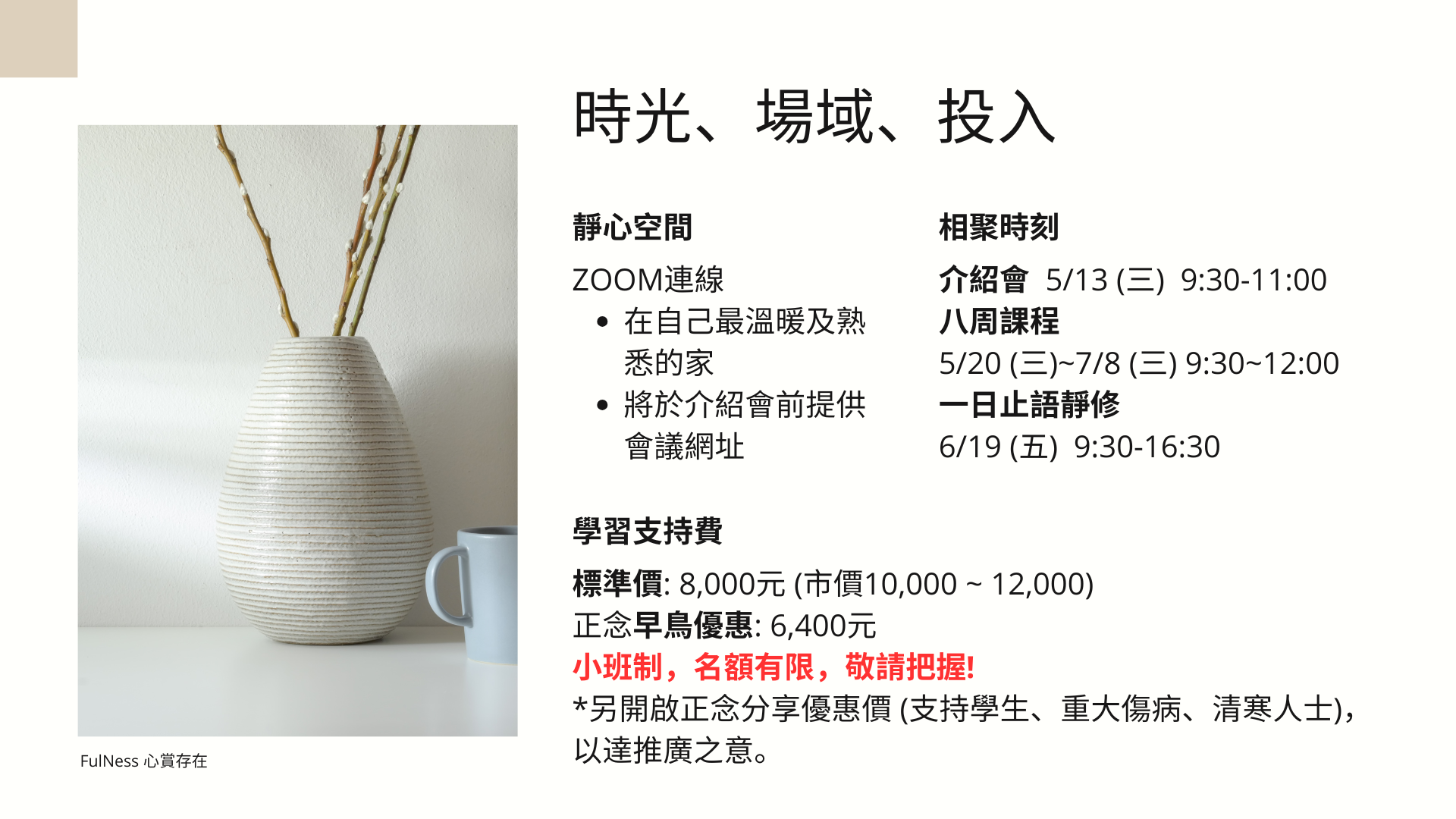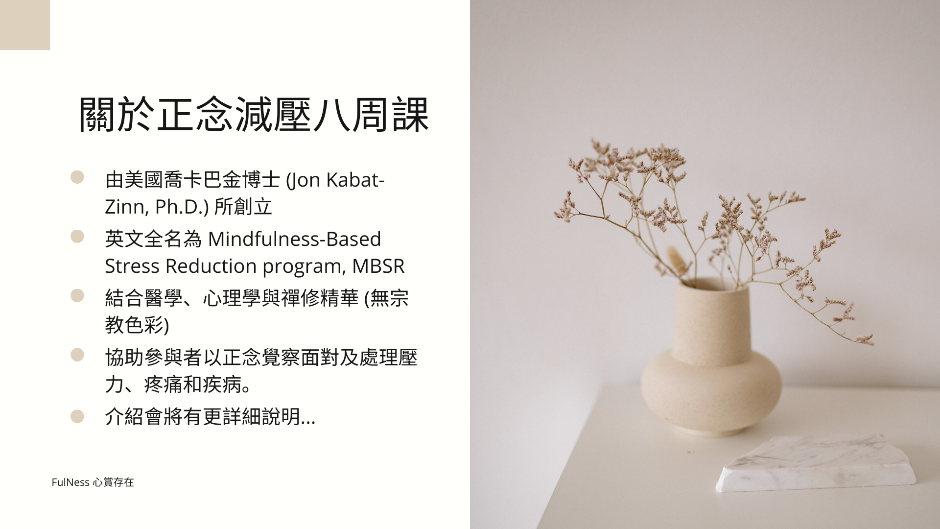 從自我覺察到自我照顧- 正念減壓八周課