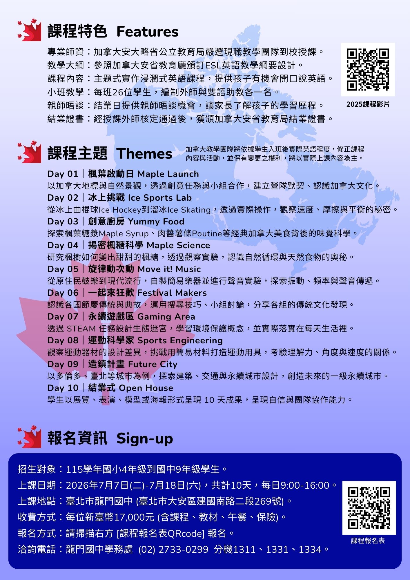 由加拿大安大略省教育體系所屬教育局專業師資團隊規劃與執行,課程內容依循加拿大 ESL 教學理念,強調學生本位、溝通導向與情境式學習,透過全英語環境,鼓勵學生勇於開口、不怕犯錯,逐步建立英語理解與表達能力。