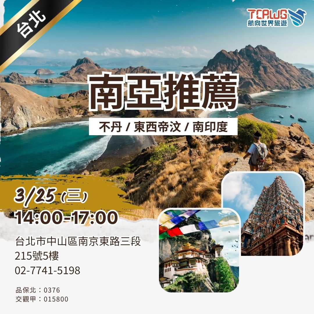 3/25(三) 台北 南亞推薦~不丹x東西帝汶x南印度